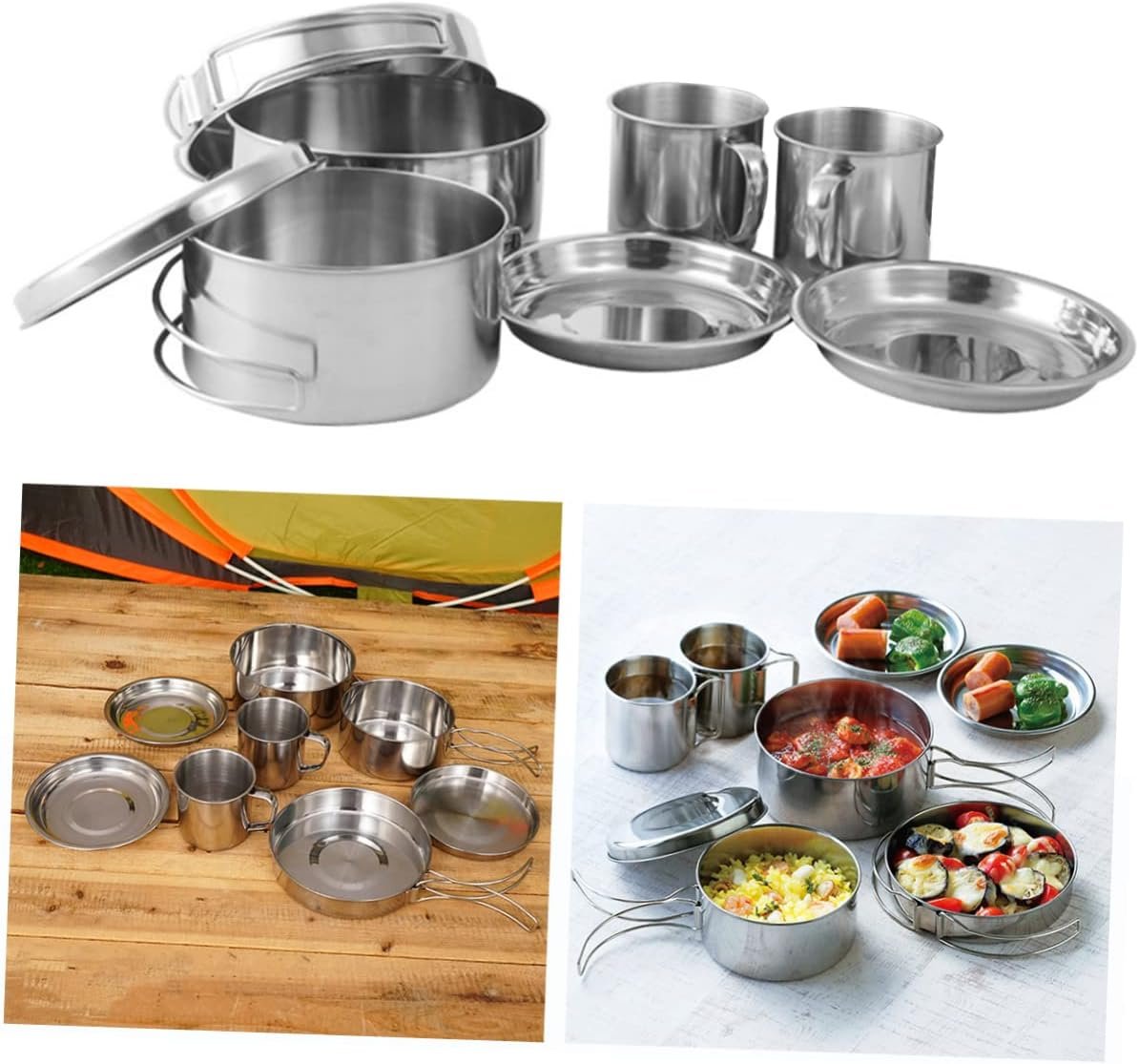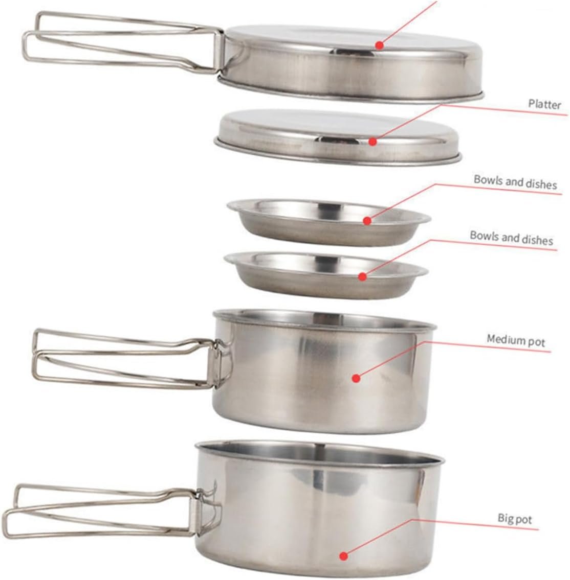Outdoor cooking pan:these portable stainless steel cookware kit is for outdoor camping, hiking, fishing, and so on,camping cooking pan
