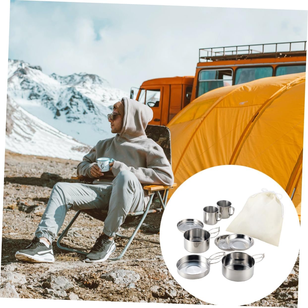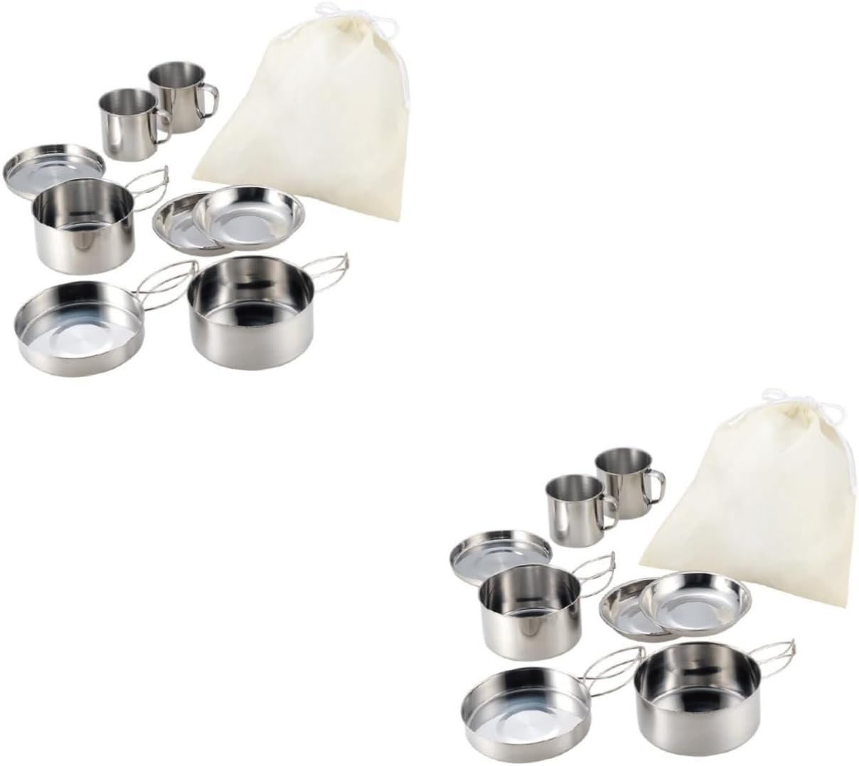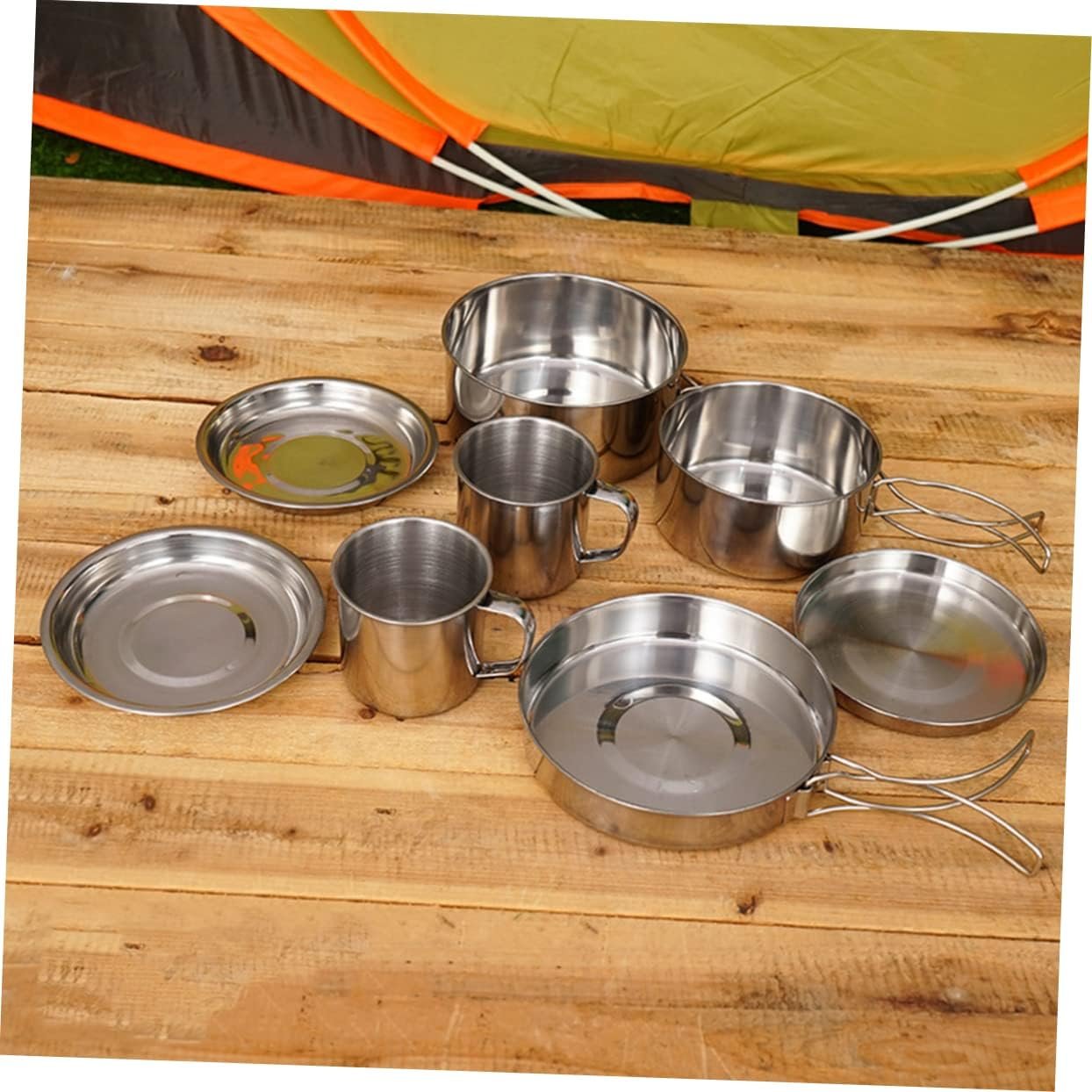 Camping cooking tool:made of stainless steel, these cookwares are durable, fast heating, for outdoor use,portable cookware kit