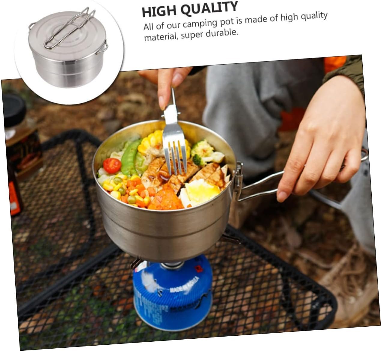 Outdoor pot:all of our camping pot is made of material, super durable,camping pot