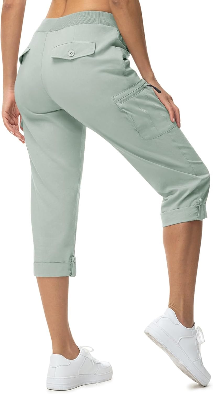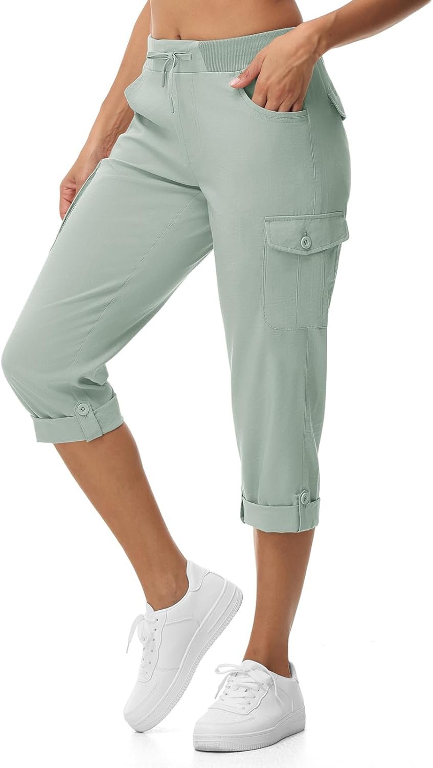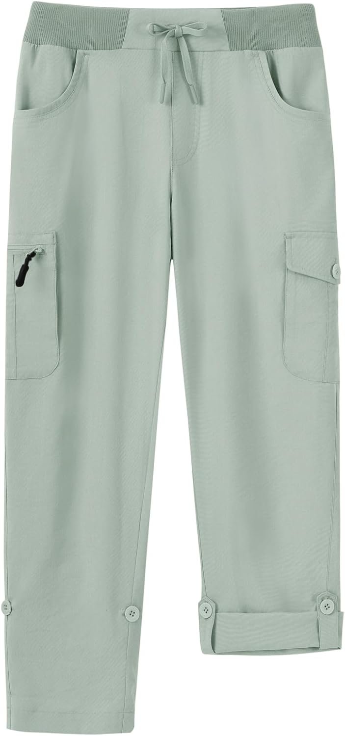 BGOWATU Women’s Capris Lightweight Cargo Hiking Pants with 6 Pockets Quick Dry Summer Outdoor Casual Travel Roll Up Pants