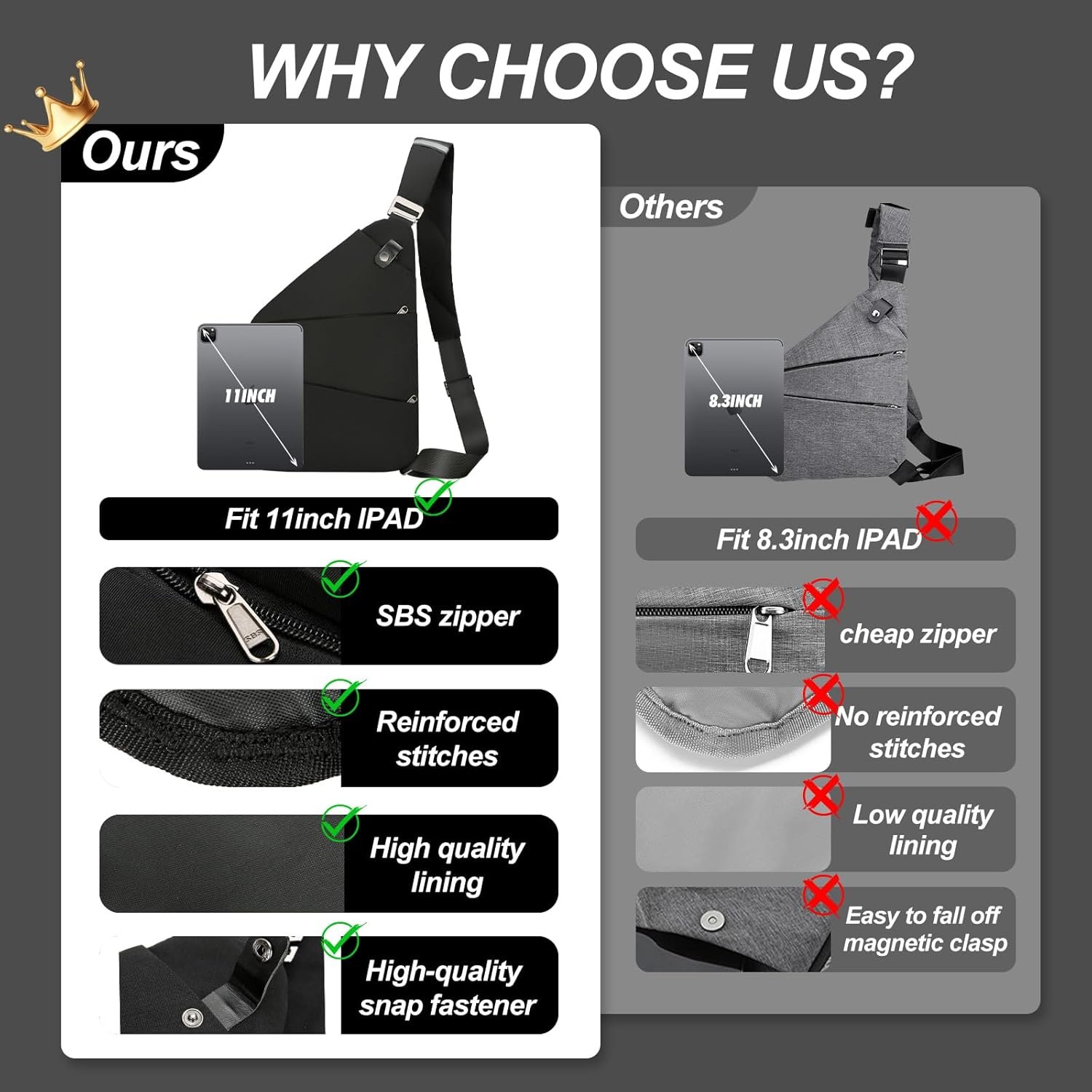 Versatile Sling Bag: This sleek, stylish chest bag is perfect for all ages. Ideal for work, school, gym, and daily, it can be worn over the shoulder or across the body. A versatile accessory for any outfit, a great gift for friends, family, and loved ones.