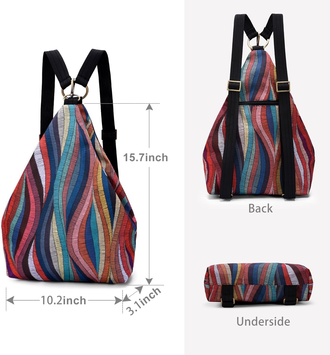 【Original Design】Inside: Secure zipper, cell phone bag, card bag; Back: Zipper pocket quick access to phone, wallet and other items; The length of shoulder strap can be adjusted freely;It is a fashion backpacks but also a chest backpack;The original bohemian style pattern is very personal, sleek and stylish, which avoids carrying the same bag as others;This backpack is ideal for working, shopping, traveling, going to the beach and going on other activities