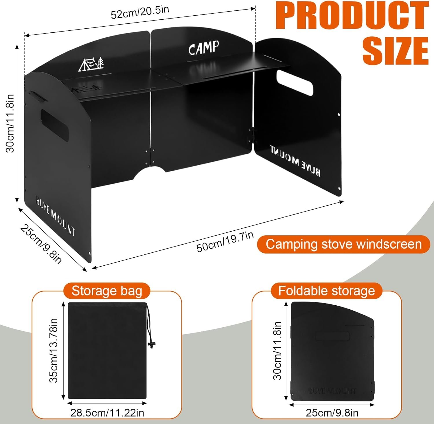 FOLDABLE : The windscreen is designed to be foldable, making it extremely compact and easy to carry. It conveniently fits into your backpack or camping gear, taking up minimal space while ensuring you have wind protection whenever you need it.