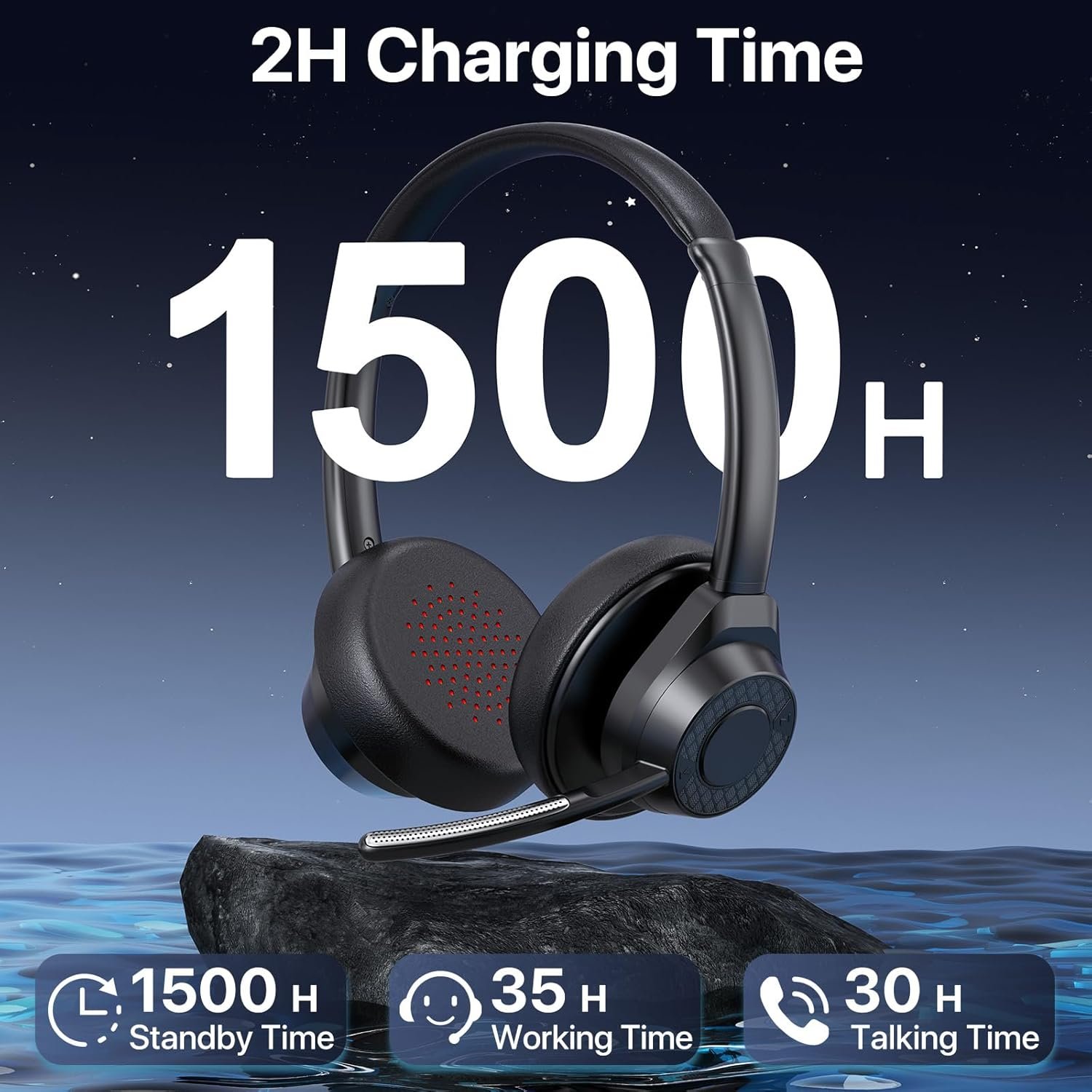 Long Battery Life for All-Day Use – Enjoy up to 35 hours of listening time and 30 hours of talk time on just a 2-hour charge with this wireless bluetooth headset. With long standby time exceeding two months, bluetooth headset is perfect for busy professionals, students, and frequent travelers. Eliminate battery anxiety and stay productive with one of the most reliable bluetooth headphones with mic.