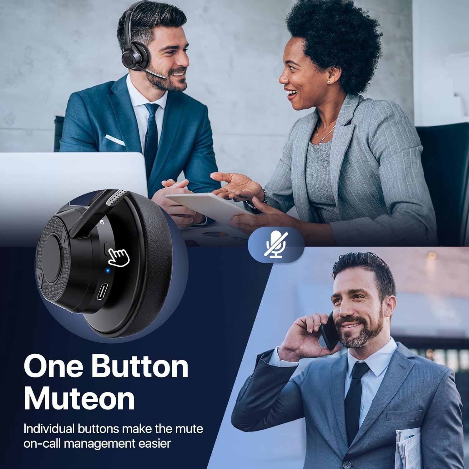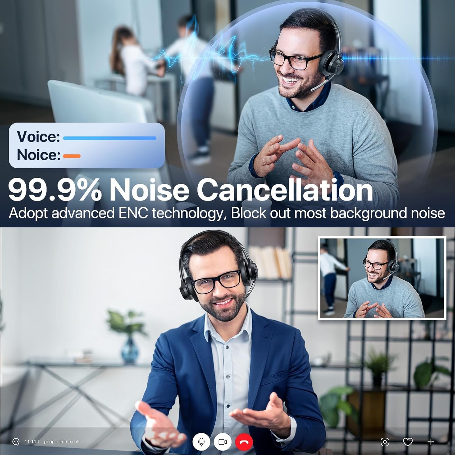No matter where you are, our wireless headset with mic for work ensures your voice is crystal clear