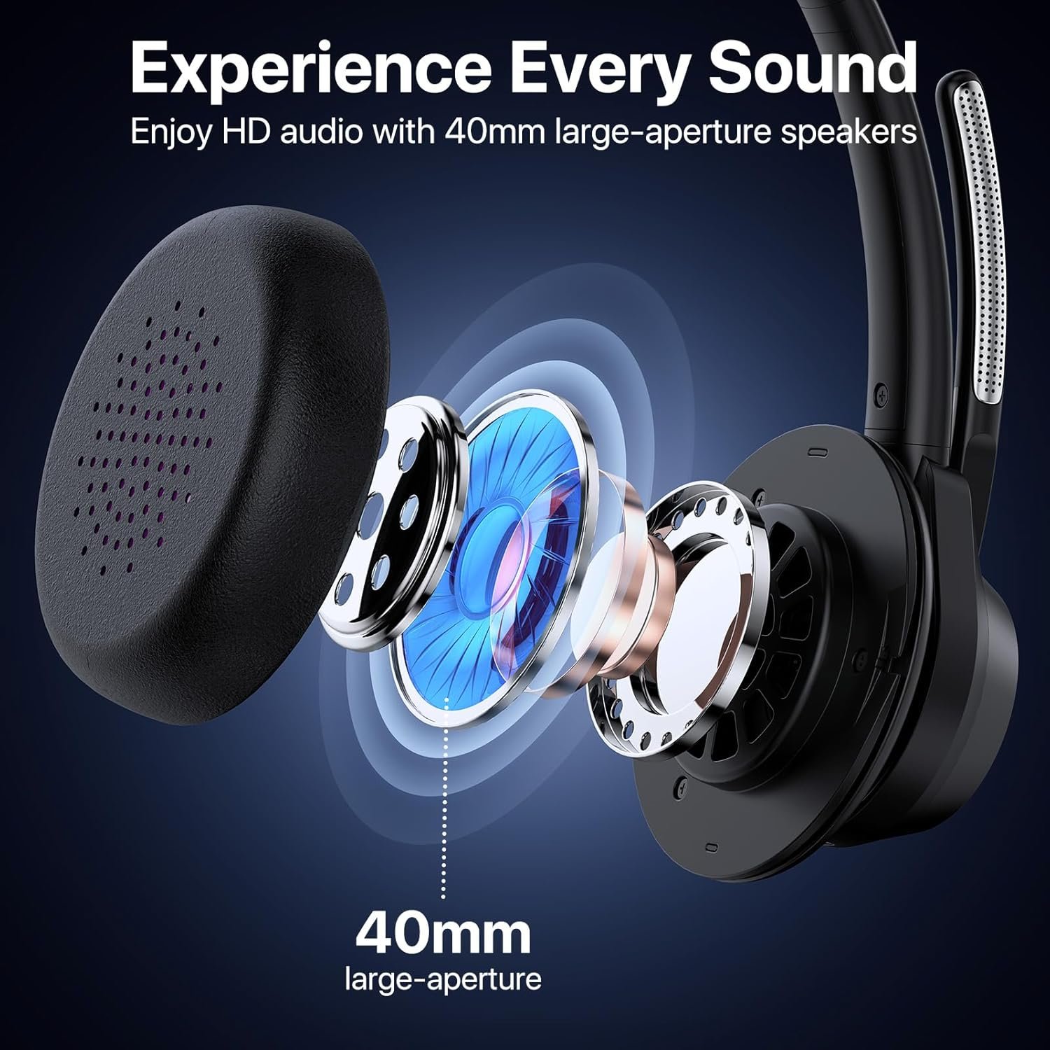 Impressive Audio Quality – Experience exceptional sound clarity with the CPTEA wireless headset’s 40mm dynamic driver and custom-tuned diaphragm. Whether you’re on calls, working from home, or attending online classes, this bluetooth headset with microphone delivers immersive audio that keeps you focused and engaged. It’s an ideal wireless headset for work, school, and everyday listening needs.
