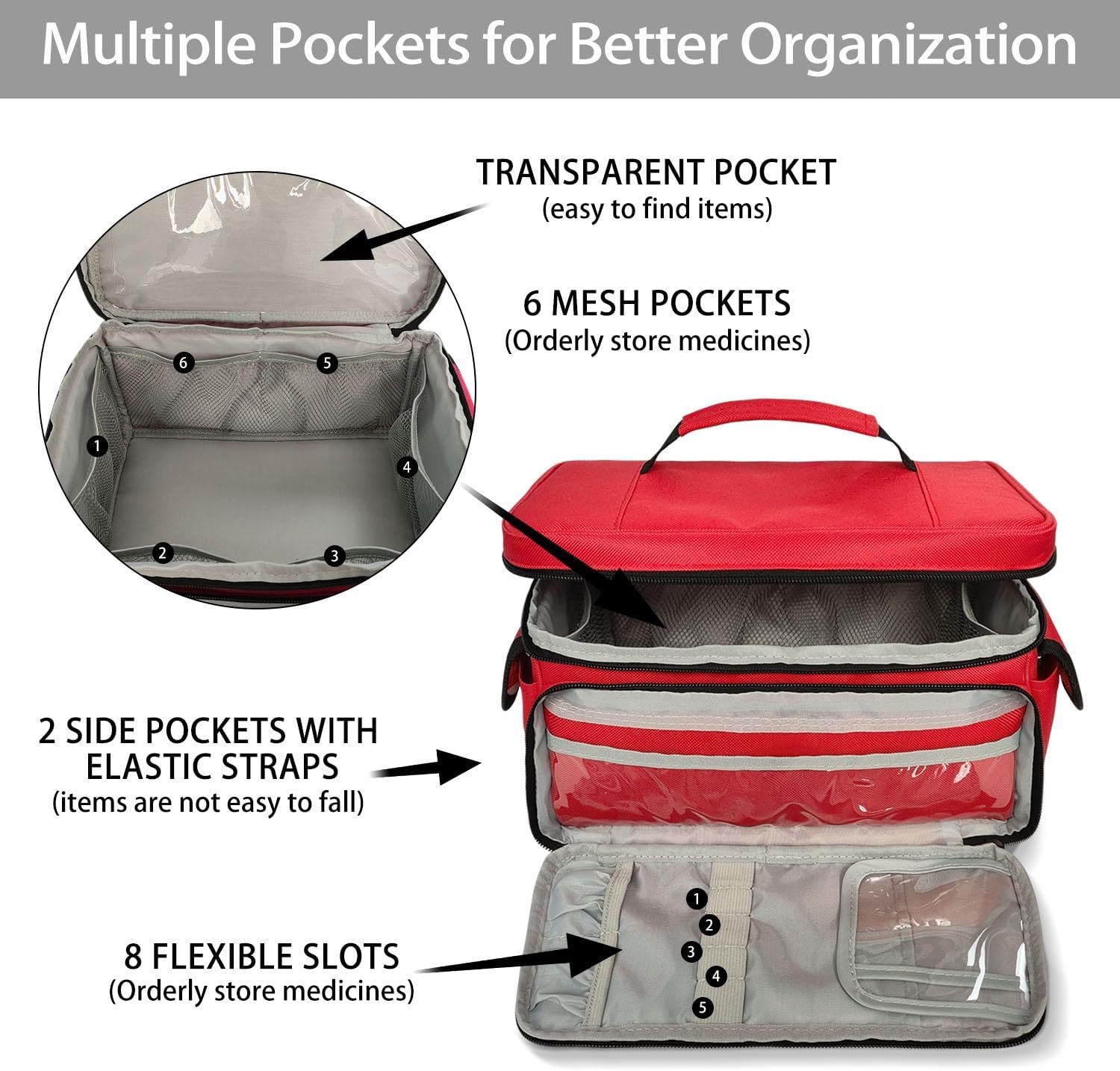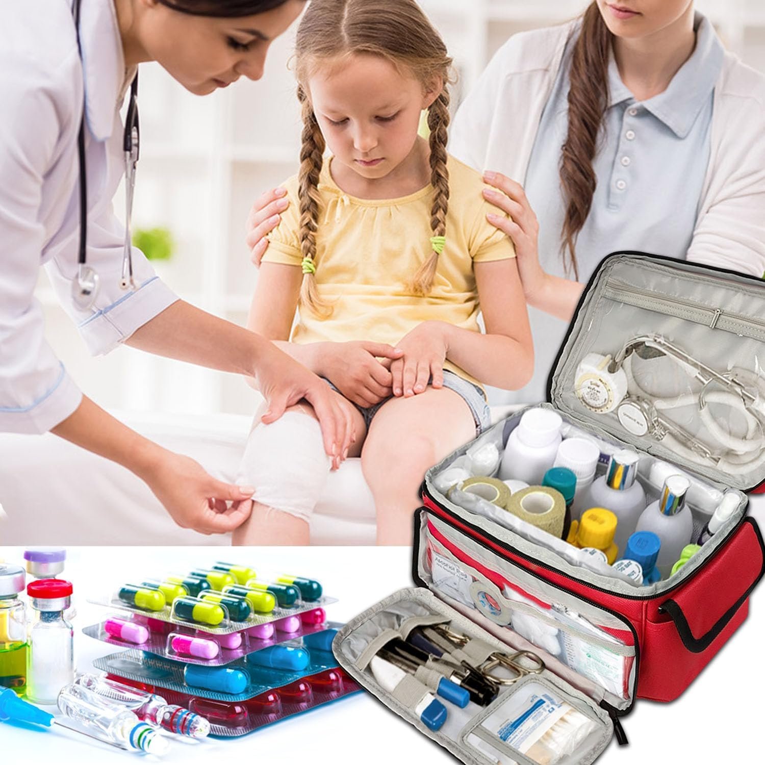 🏥【WATERPROOF & DURABLE BAG】- Made of high-quality waterproof thickened polyster material to better protect the medical supplies inside and improve the durability of the bag. The top handle and double zippers design are convenient for daily use and portability