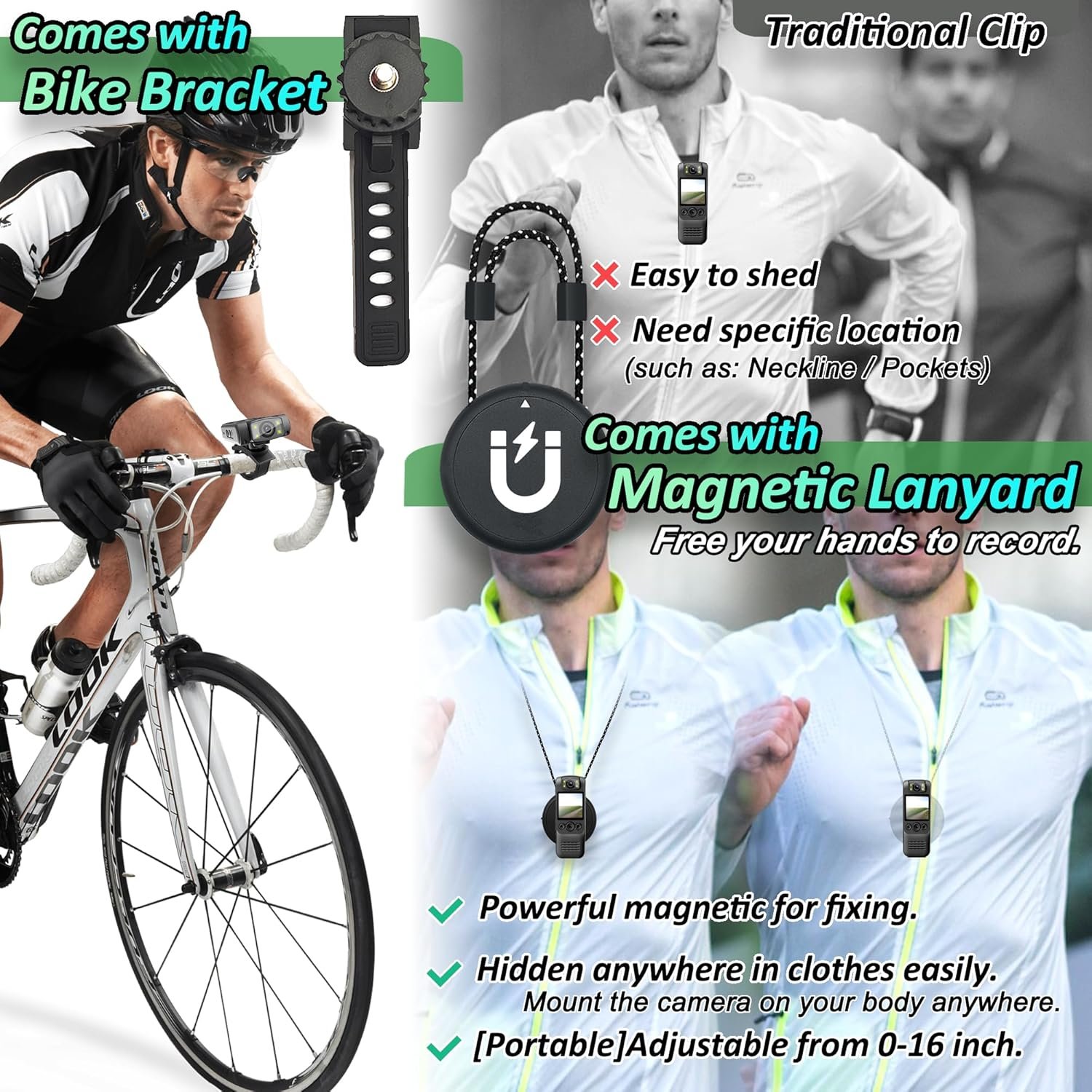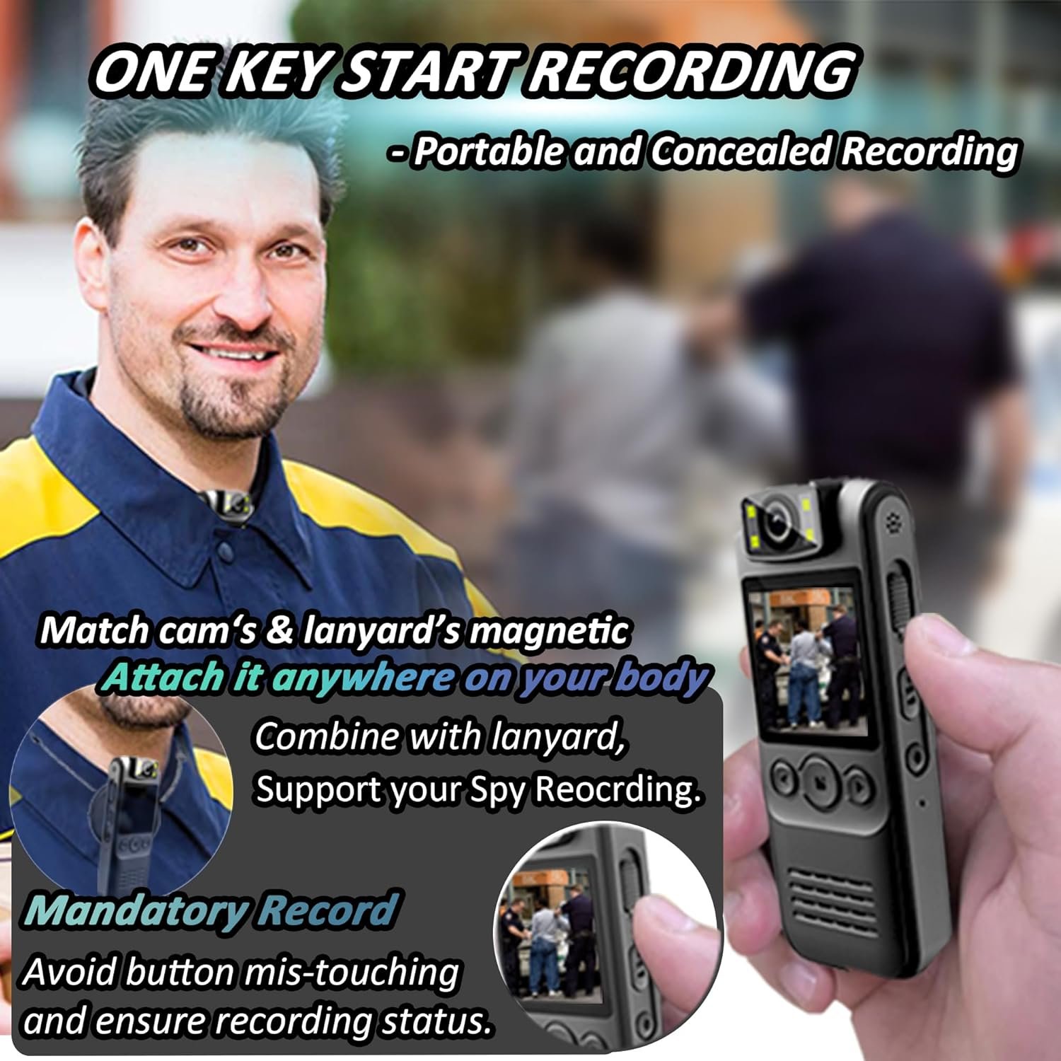 【Ture HD 1080P & Magnetic Lanyard】Ksadbossbo Body Camera Combine high-quality optical glass & multi-layer coating technology to ensure the recording quality, videos can be captured accurately & clearly by it. Through the 1080p sensor, you don’t worry about losing any detail under your 12 million-pixel footage. The H.264 format helps you effectively save your videos, ensuring safety and memory limits. We also come with a mini magnetic lanyard for your camera fixing & recording at any when/where.
