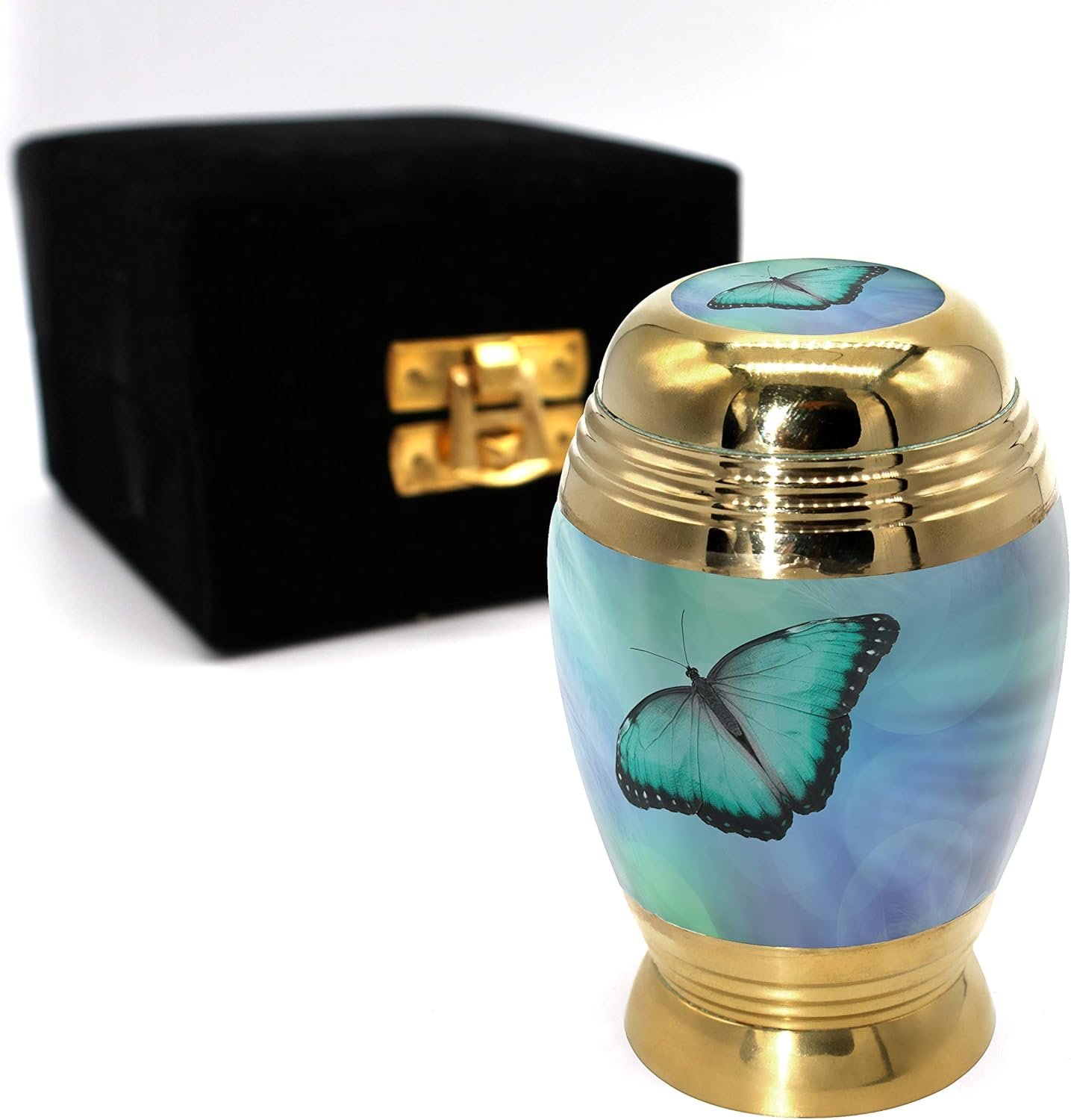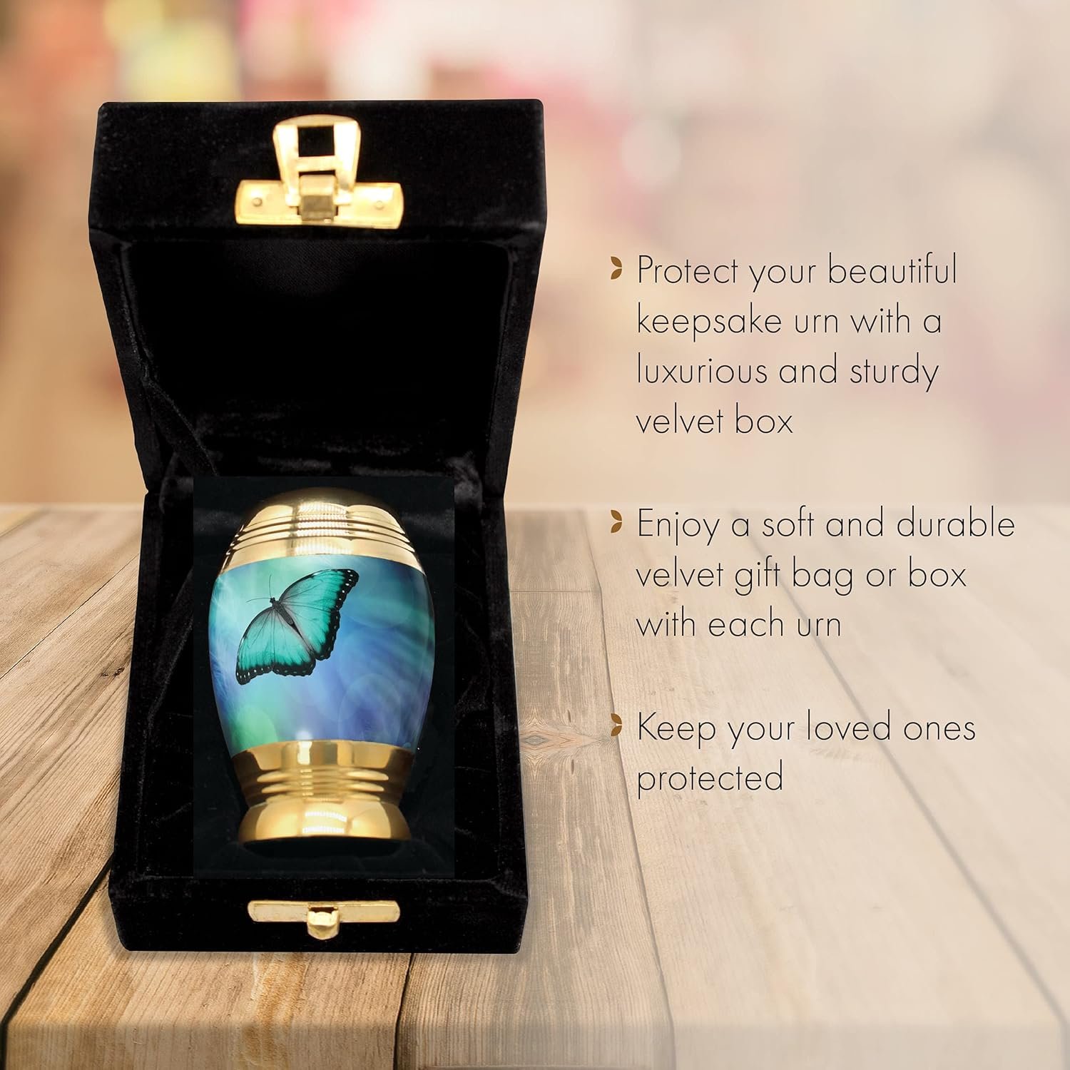 Elegant Handcrafted Design : Our cremation urns for adult ashes women are constructed with the finest metals and features detailed hand engravings. Our urn with butterflies are carefully polished to give your loved one a respectful memorial. All of our cremation urns for adult ashes include a velvet bag and felted bottom to protect your furnishings from scratches.