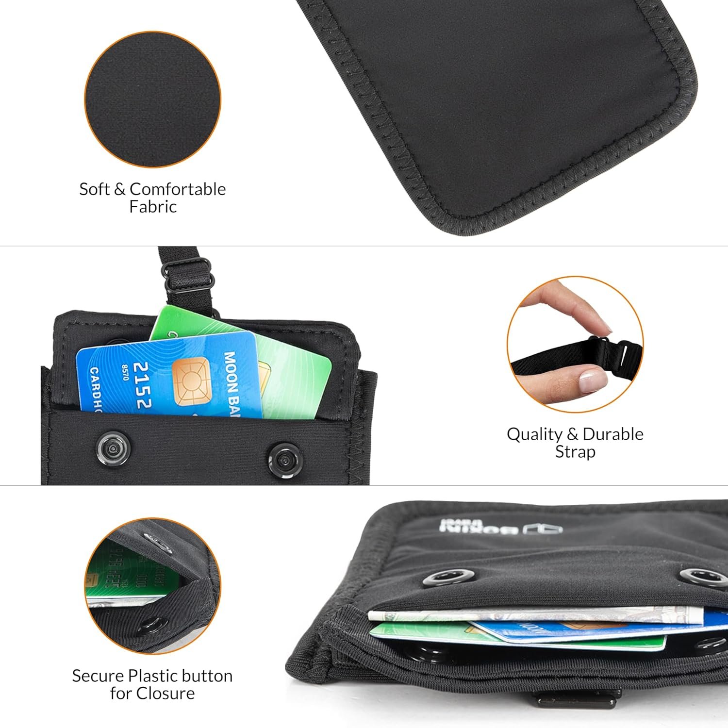 DURABLE TRAVEL POUCH: Our travel pouches, designed for wear under clothing, are made from high-quality materials that withstand long-term use. Double-stitched seams prevent tears and rips, and it can be conveniently machine or hand-washed for easy cleaning.