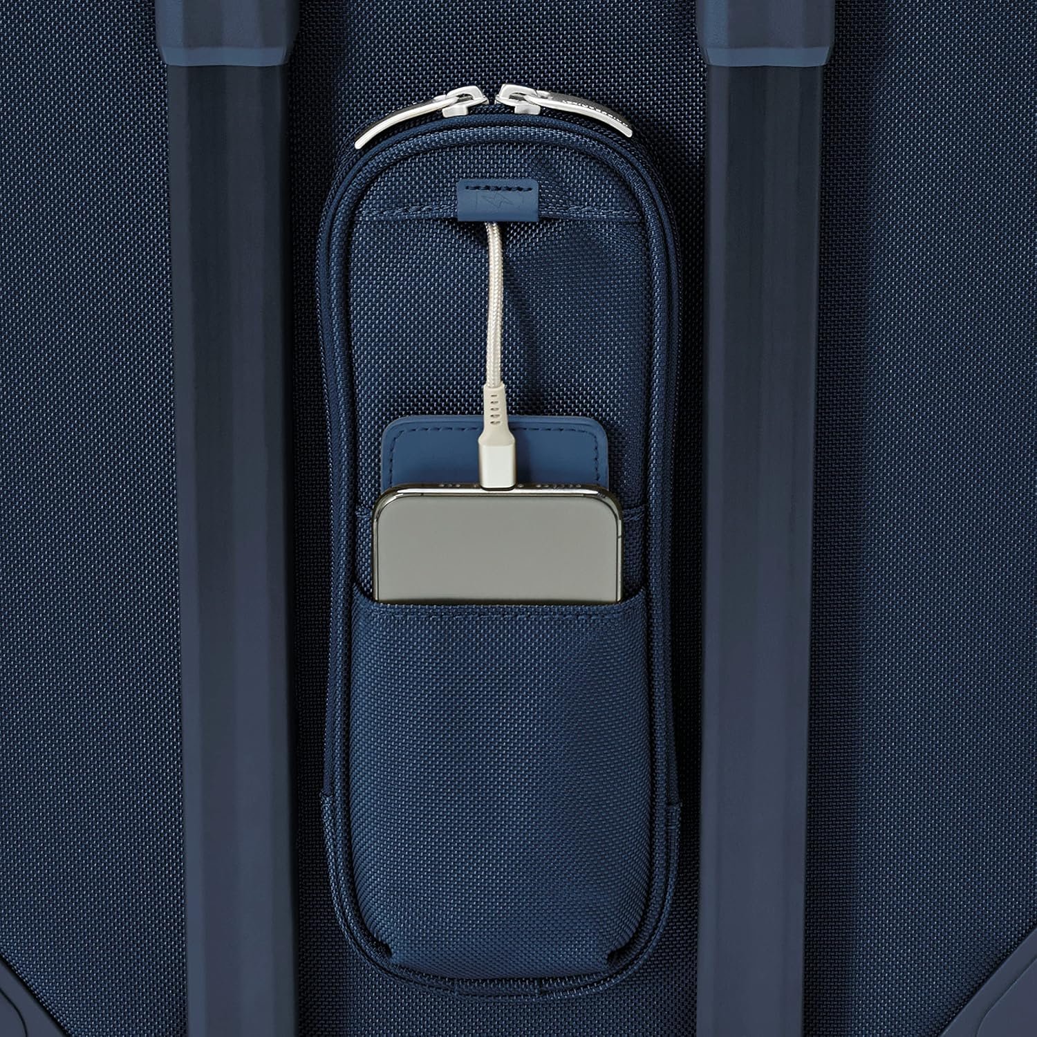 THOUGHTFUL DETAILS – A convenient exterior pocket secures essentials at checkpoints and includes orange lining to indicate when unzipped. Multiple grab handles make it easy to store in overhead bins