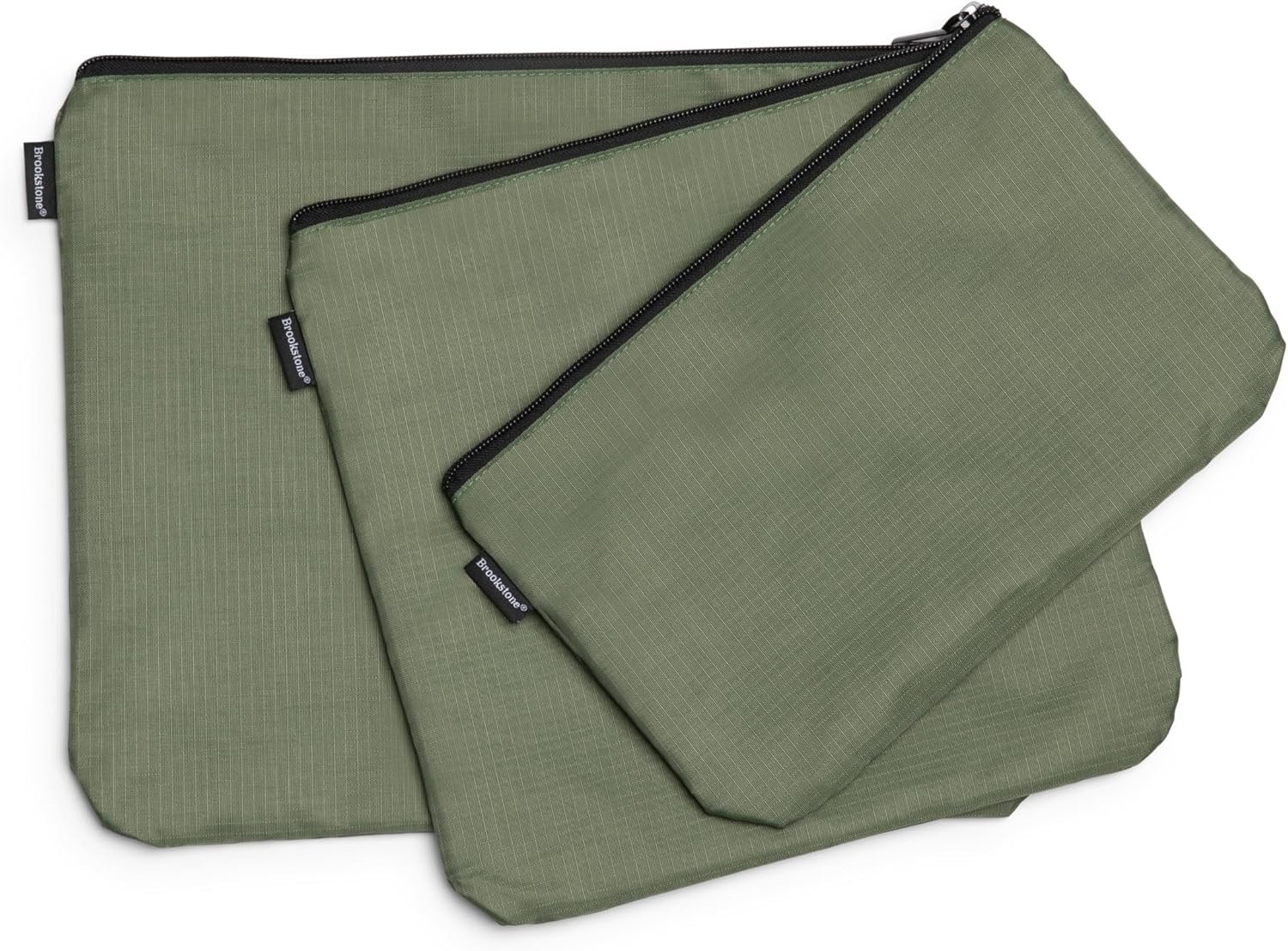 Brookstone Travel Storage Pouch – 3 Piece Flexible and Expandable Travel Zipper Pouch Set for Toiletry, Makeup, and Cosmetics, Olive
