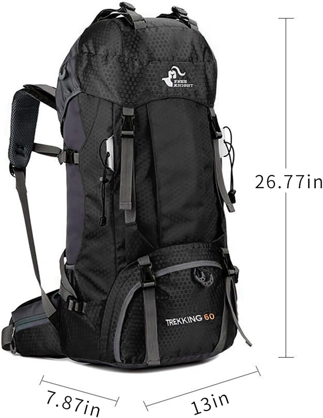 Lightweight outdoor backpack, ultralight, only 2.1 lbs for a large 60L capacity, reducing the weight of the backpack so you can carry more other items. The maximum load bearing capacity is 33 lb. Unfolded size: 68 x 33 x 20 cm / 26.77 x 13 x 7.87 inches.