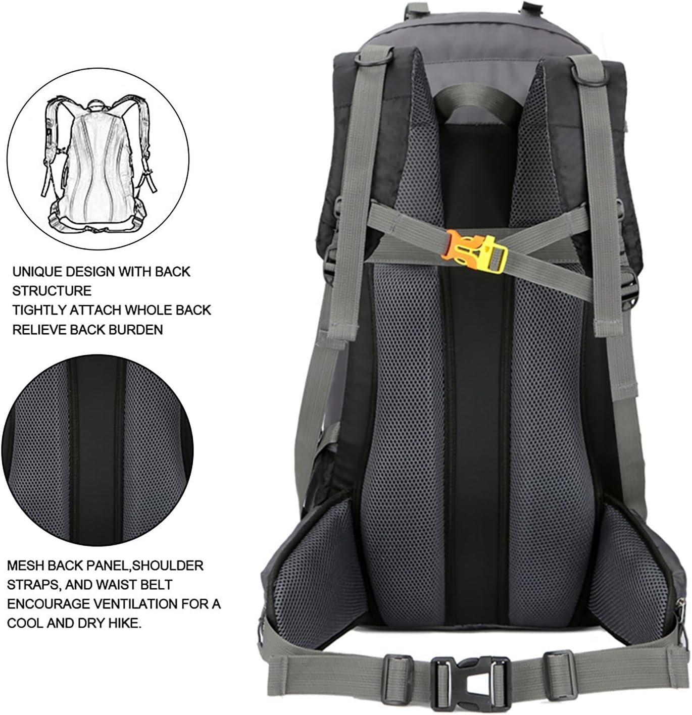 Comfortable Daypack: This climbing backpack is designed specifically for travellers. Ergonomic padded shoulder straps and back support make you feel more comfortable. Breathable mesh shoulder straps with plenty of sponge padding help relieve shoulder strain. Widened and thickened S-type shoulder straps and high elastic breathable back panel for best ventilation and load distribution. This pack has no internal or external frame.