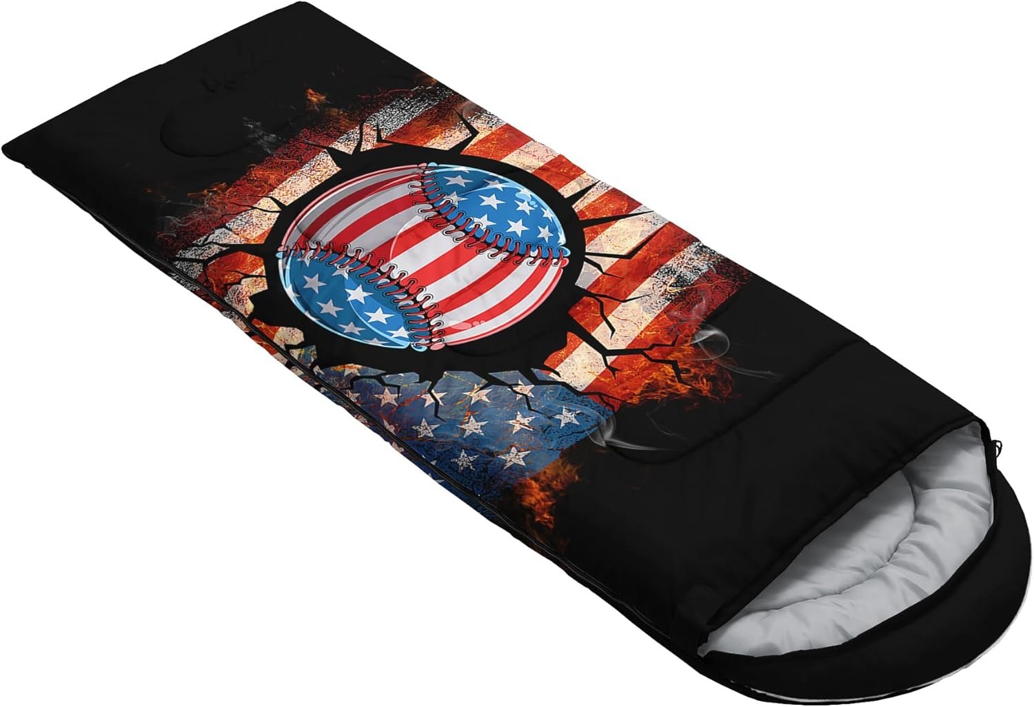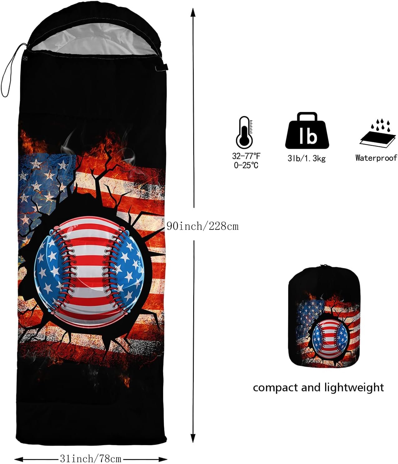 BSNTHO American Baseball Camping Sleeping Bags,3 Season Warm & Cool Weather,Lightweight,Waterproof Sleeping Bags for Adults & Kids,Traveling,and Outdoors,Camping Gear Equipment,31x90inch
