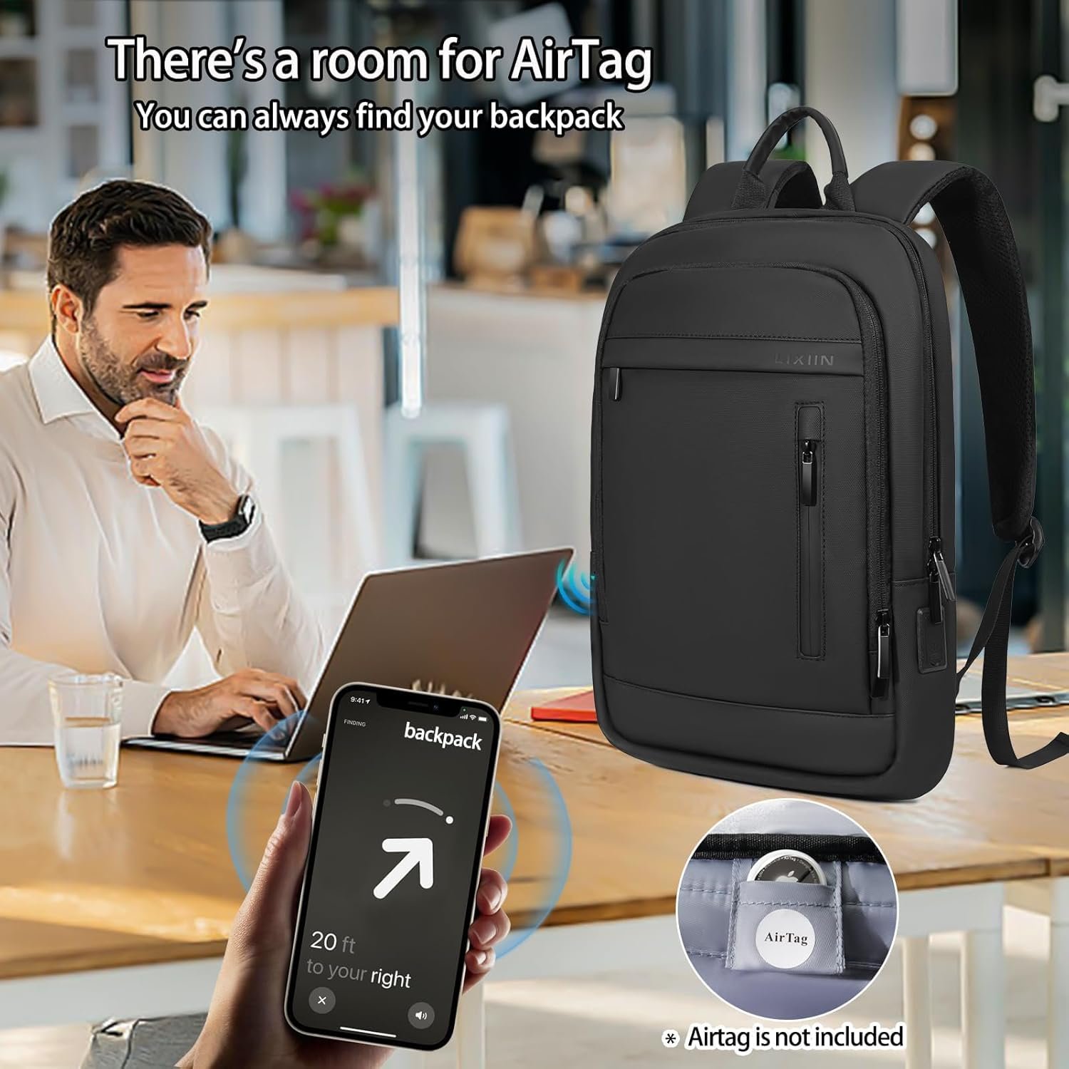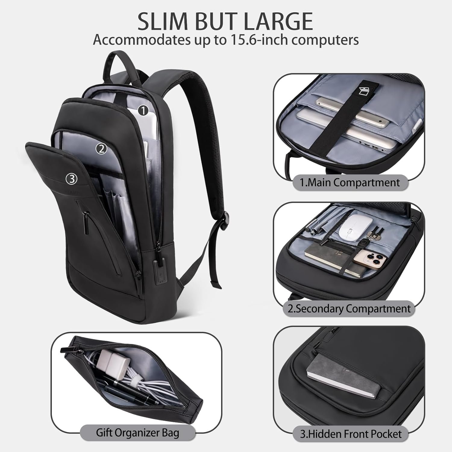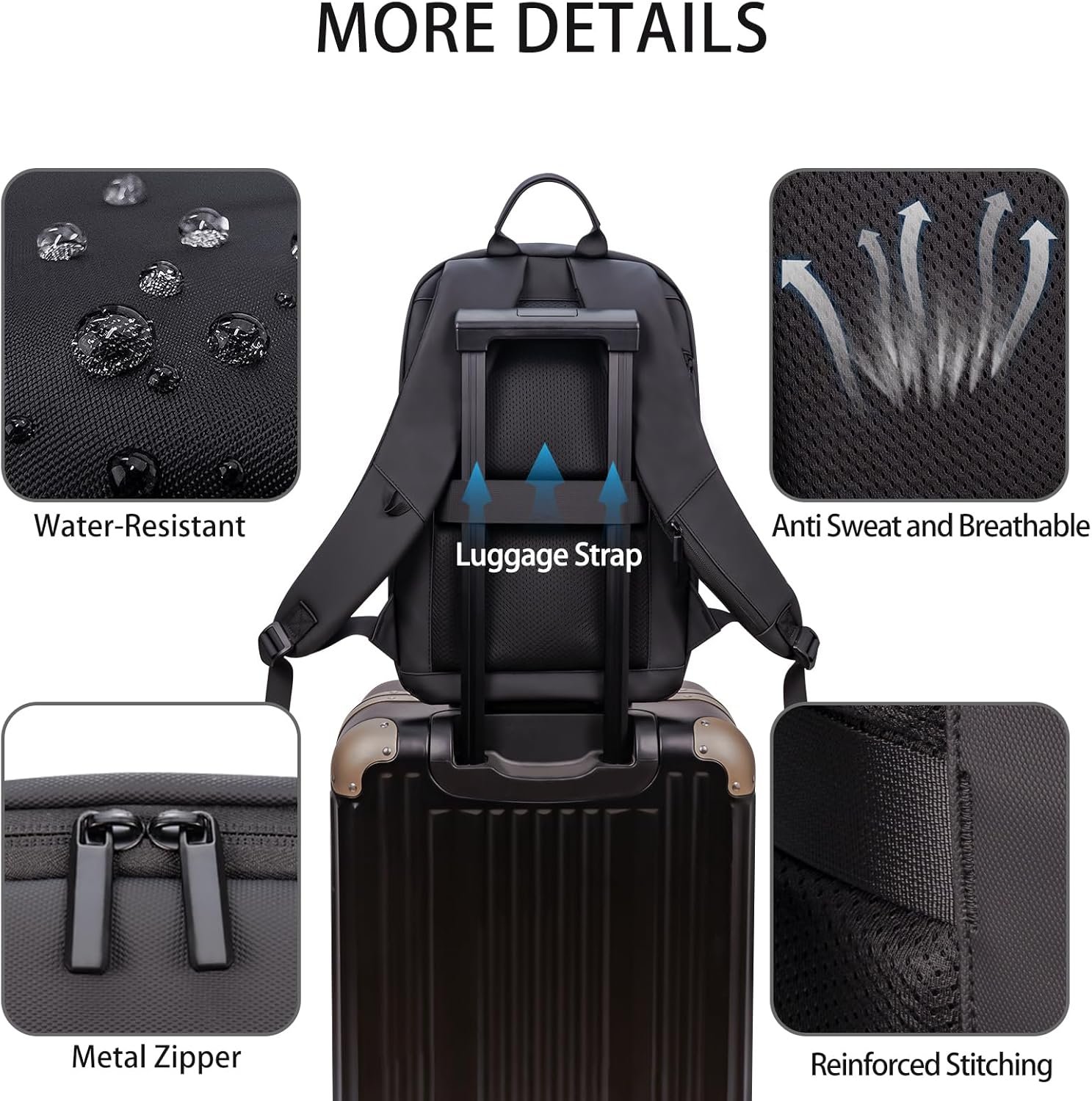 【Easy to Organize & Find】This business backpack for men can organize your stuff and find it quickly, the ultimate thin design is suitable for all men and women.This laptop backpack also comes with an additional 8.8*3.7*1.5inch pouch, which can be used as a pen pouch or Charger storage bag.This lightweight laptop backpack is only 680g/1.5lb, very thin and lightweight can reduce the burden on your back. The simple and stylish design is suitable for any scenario such as work commuting traveling.