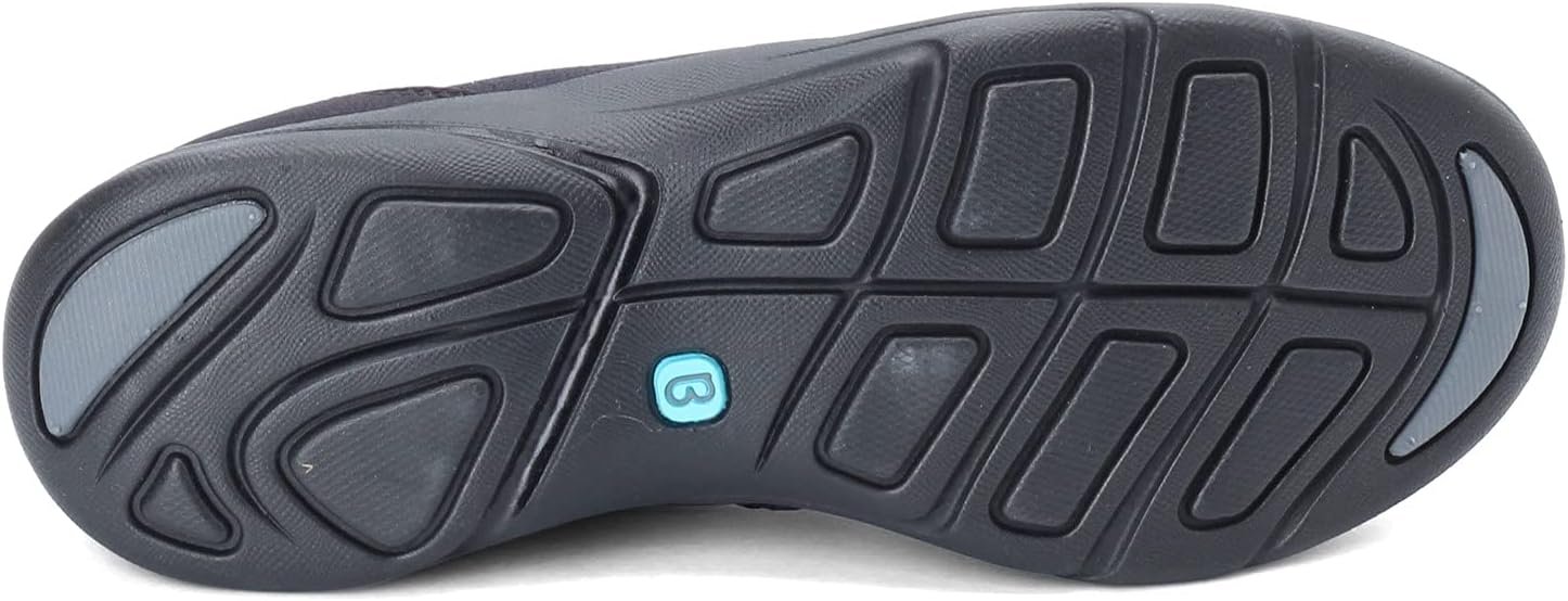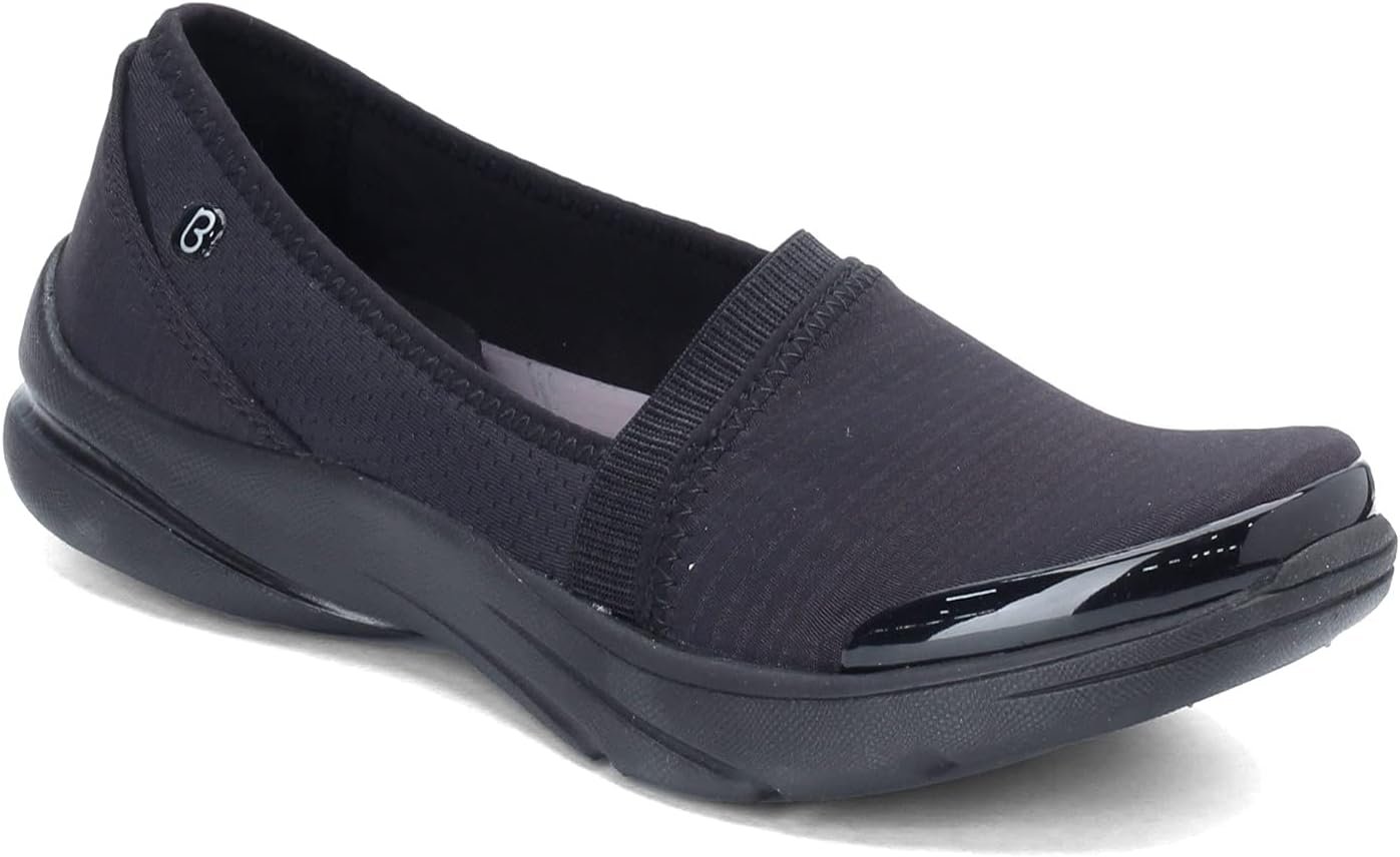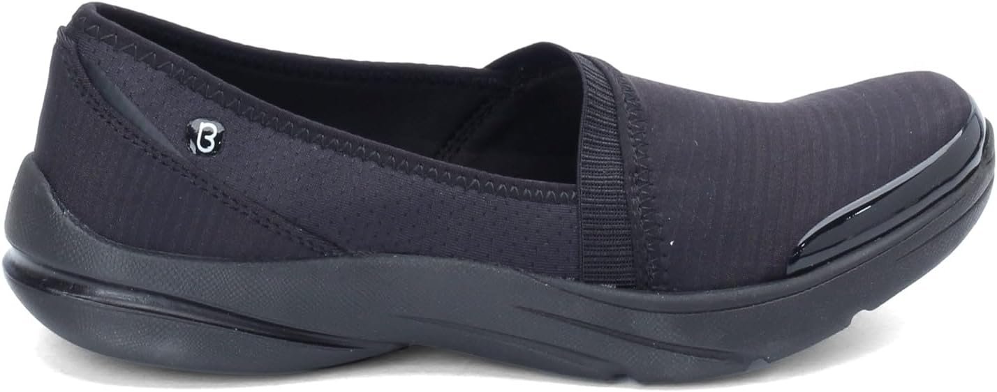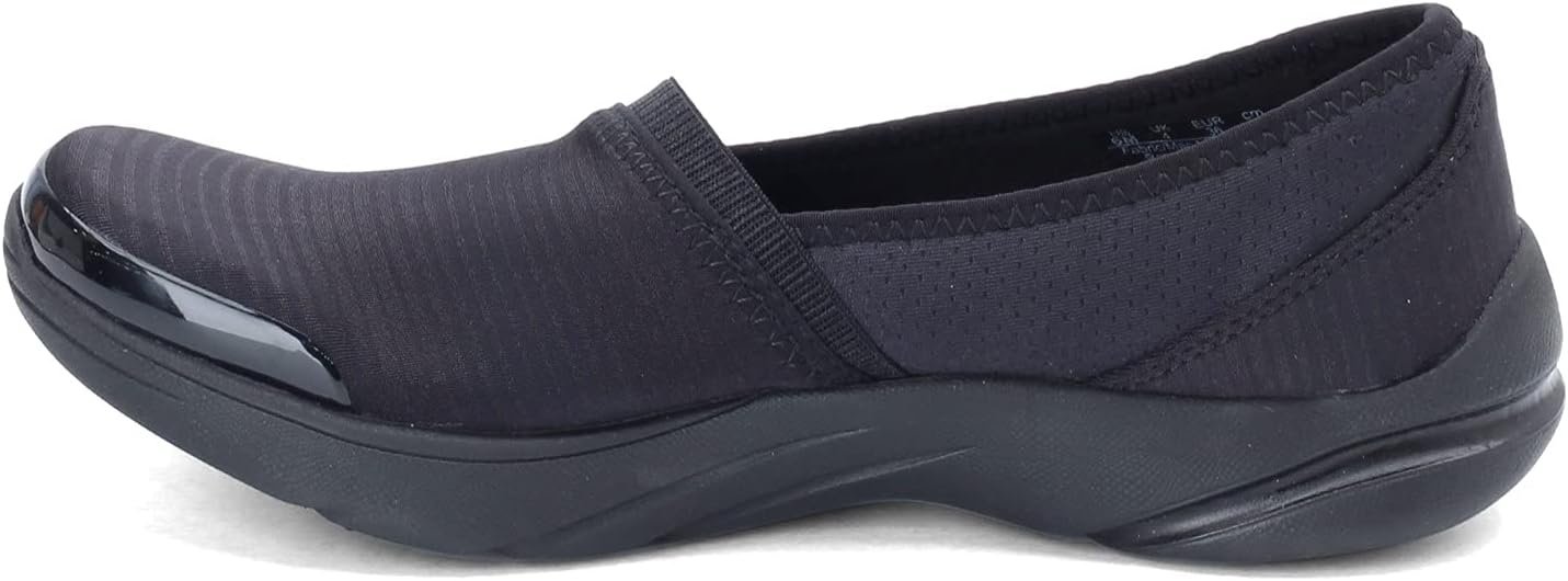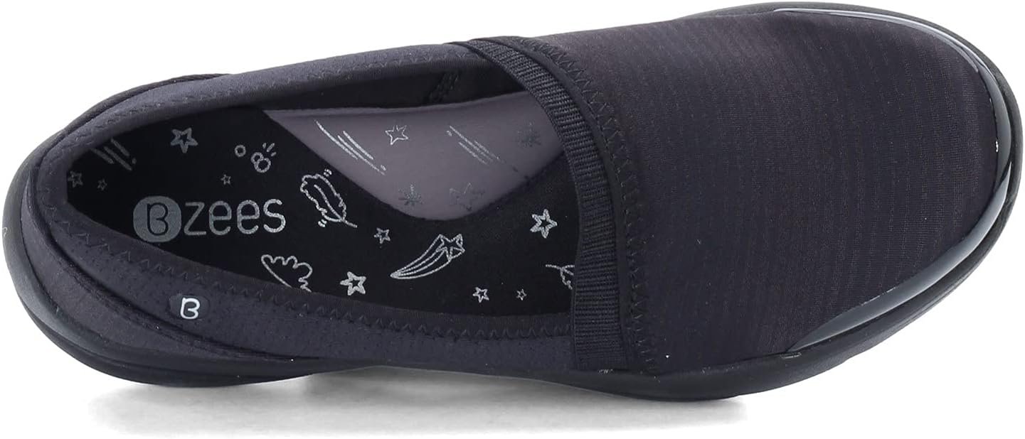 Versatile styled upper, great for wear to work or for leisure. Asymmetrical vamp with gore edging. Bzees cloud technology and machine wash materials. Comfort cone gel insert in the heel of the outsole for additional benefits and shock absorption.
