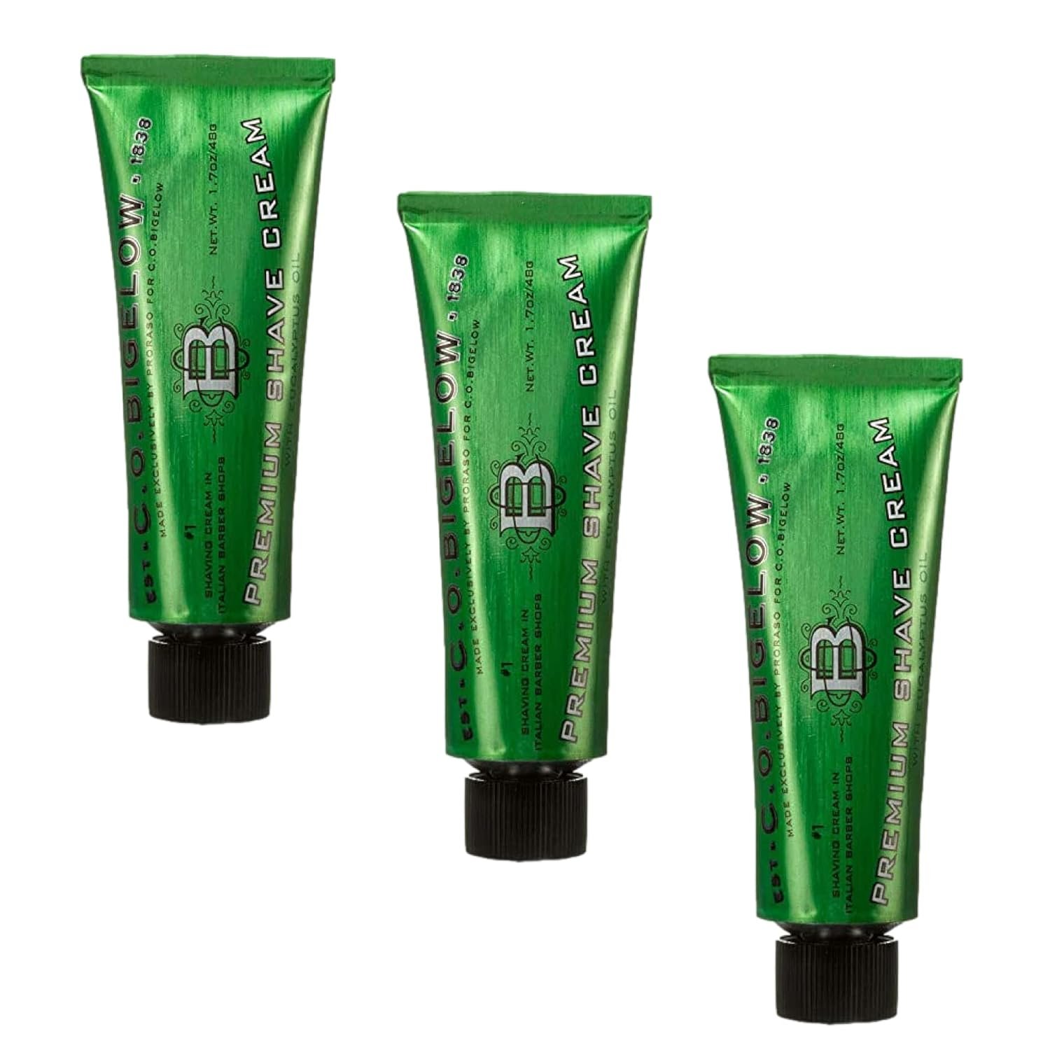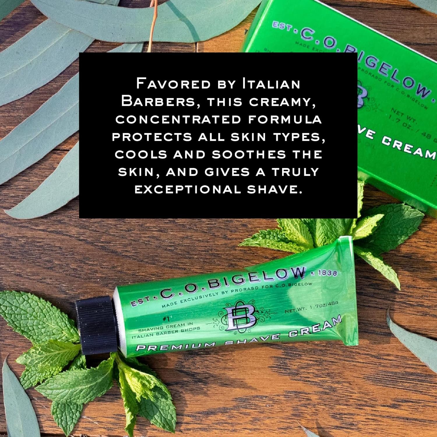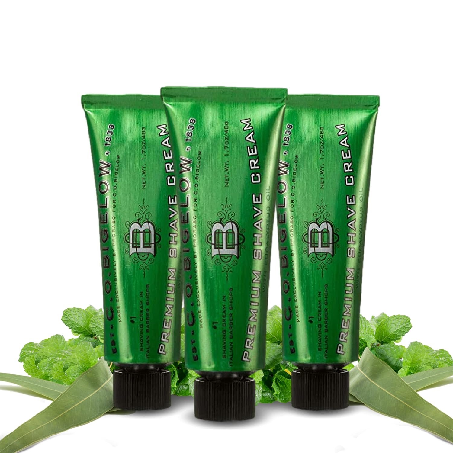 C.O. Bigelow Travel Shaving Cream for Men, Travel Sized Shave Cream, 1.7 Oz with Eucalyptus and Coconut Oil to Protect Against Razor Burn and Irritation, For All Skin Types, Pack of 3