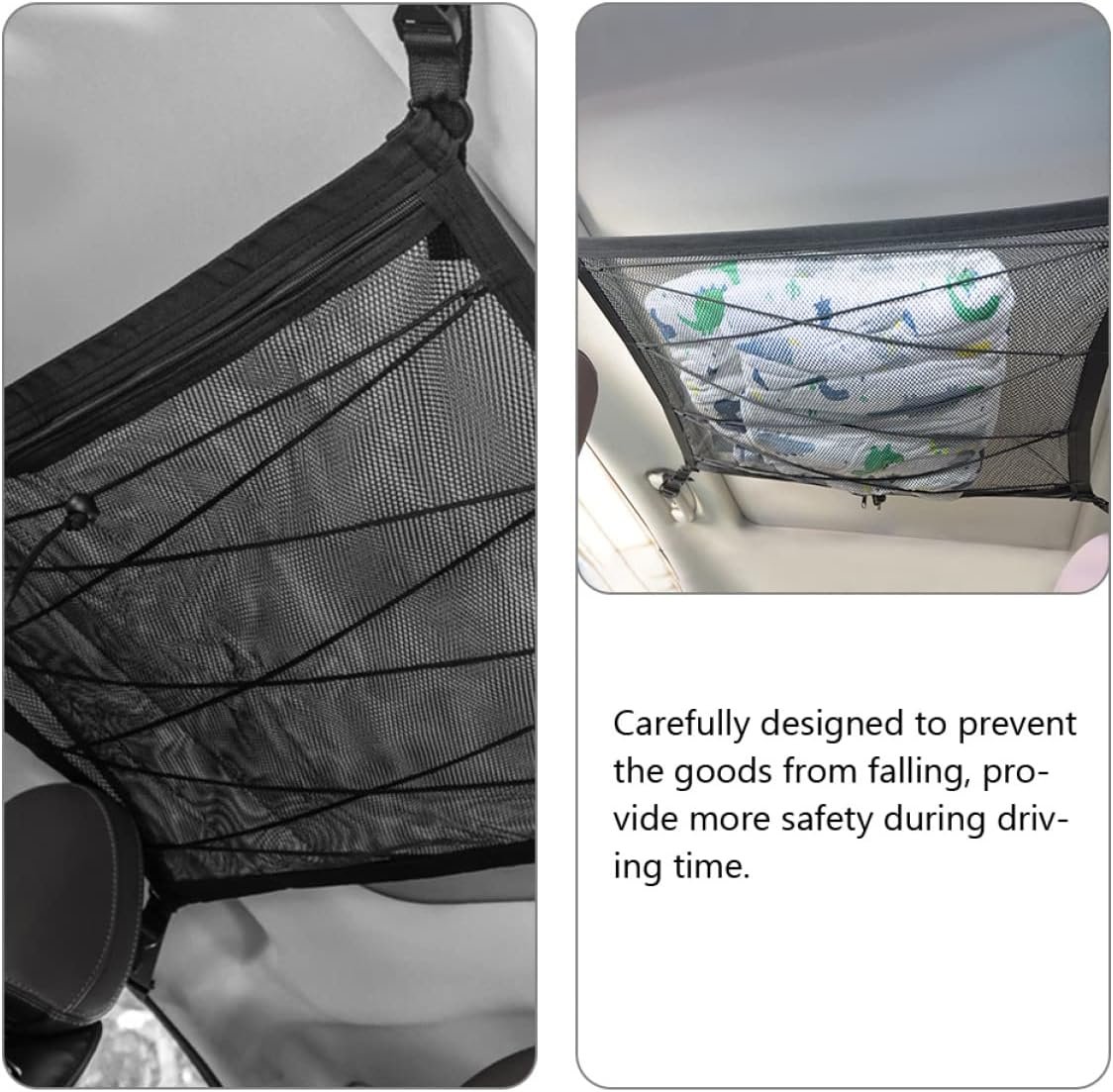 – Work great for holding quilts, clothes, snacks, , paper towels and other sundries car ceiling mesh bag.