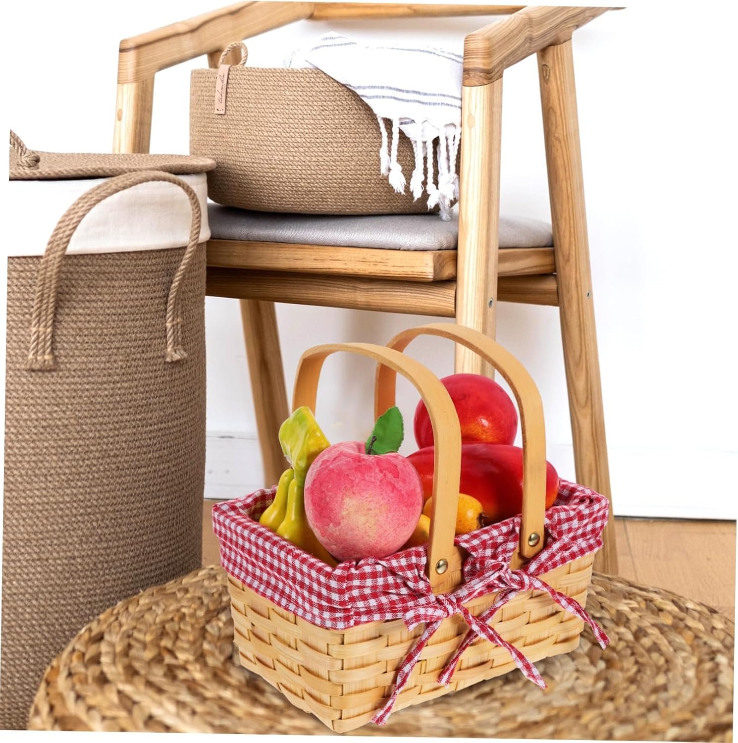 Handheld woven basket:bringing a rustic and vintage feel to picnic trips, our baskets with handle are suitable for romantic picnics, outdoor parties, road trips,decorative woven basket
