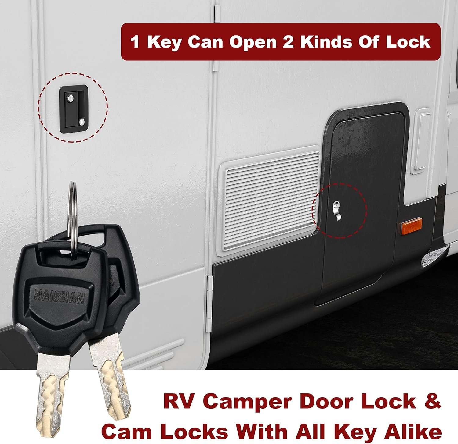 【Keycode Unique,Upgraded Security Protection】Unlike the Traditional CH751 key, Naissian keys were made by CNC Laser Engraving, its key teeth pattern is randomly generated.Locks & key coded by a 4 digit number have more than 3000 keycode different arrangement.The more permutations, the less number repetition ,AVIOD someone else HAVE THE SAME KEY with you. Make your RV camper travel trailer will not easy to open by copy same keycode keys, increasing security for your belongings.