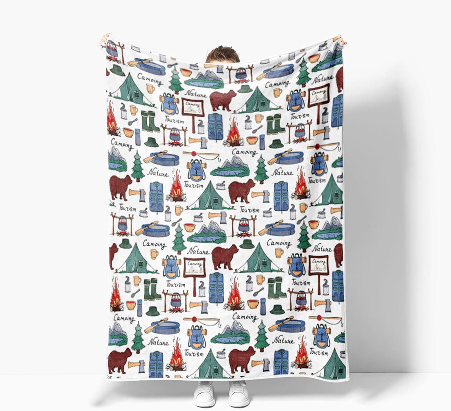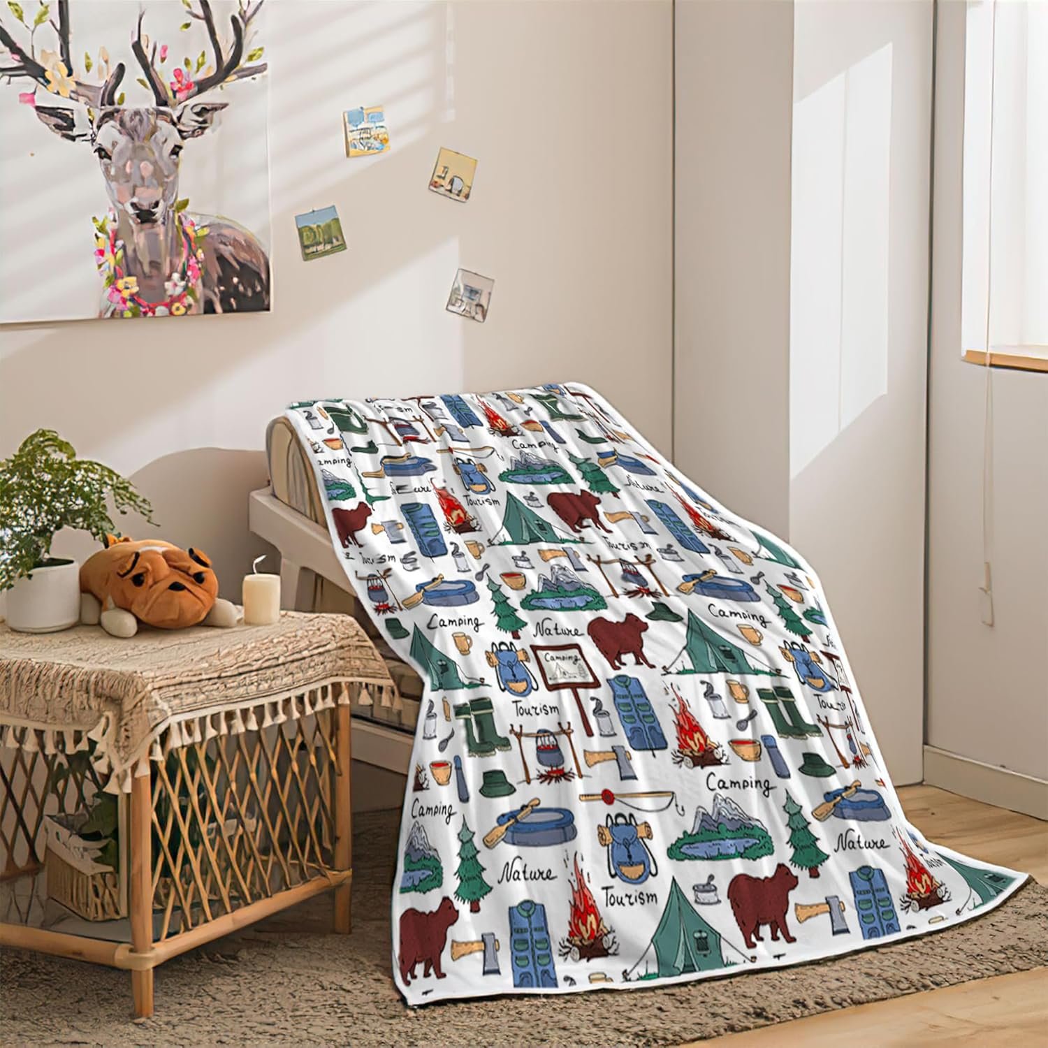 Super Soft Flannel Blanket: Camper Throw Blanket, silky soft blanket is silky smooth to touch, warm, lightweight, and cozy, providing warmth and comfort for camping enthusiasts.