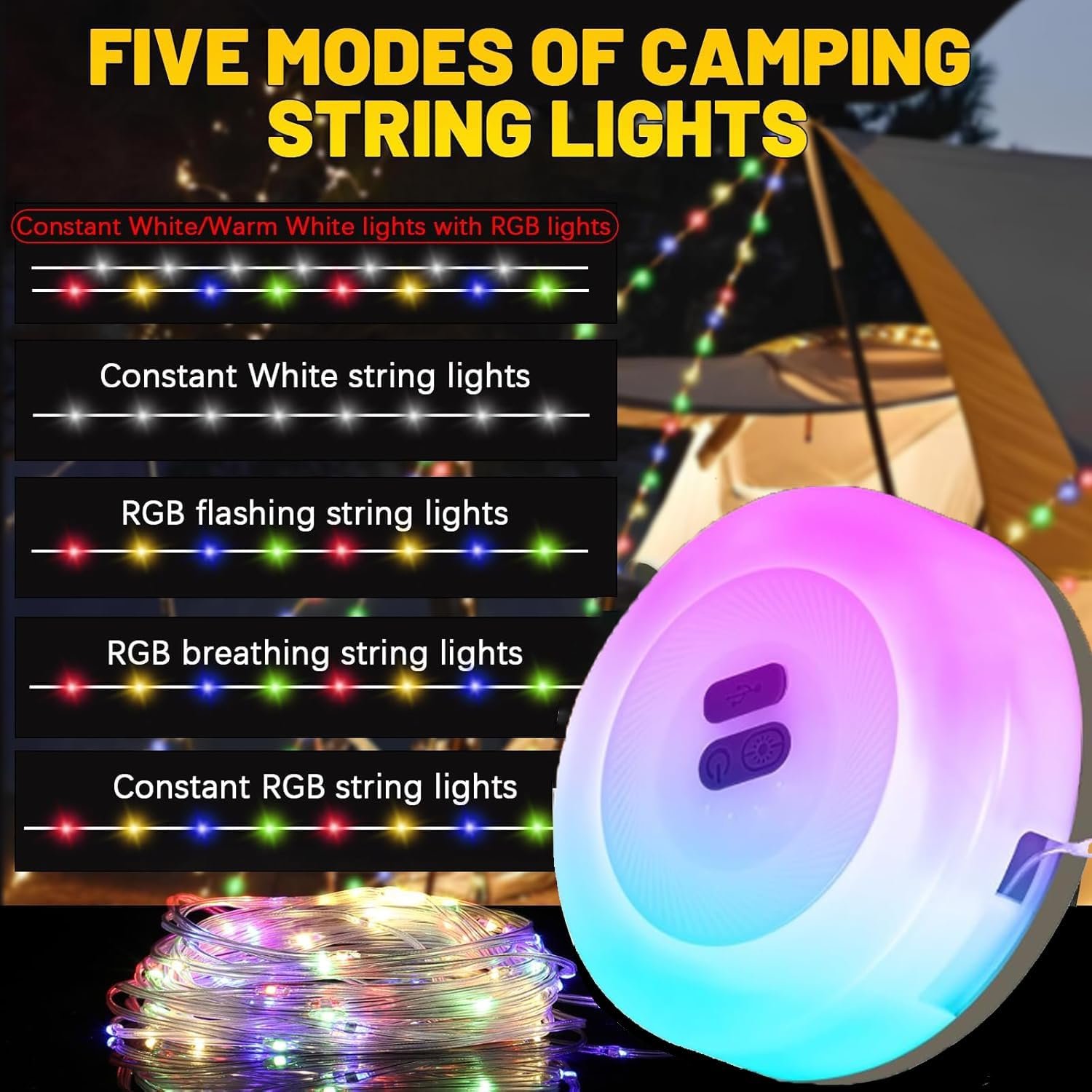 Rechargeable Tent Lights String with 8 Lighting Modes