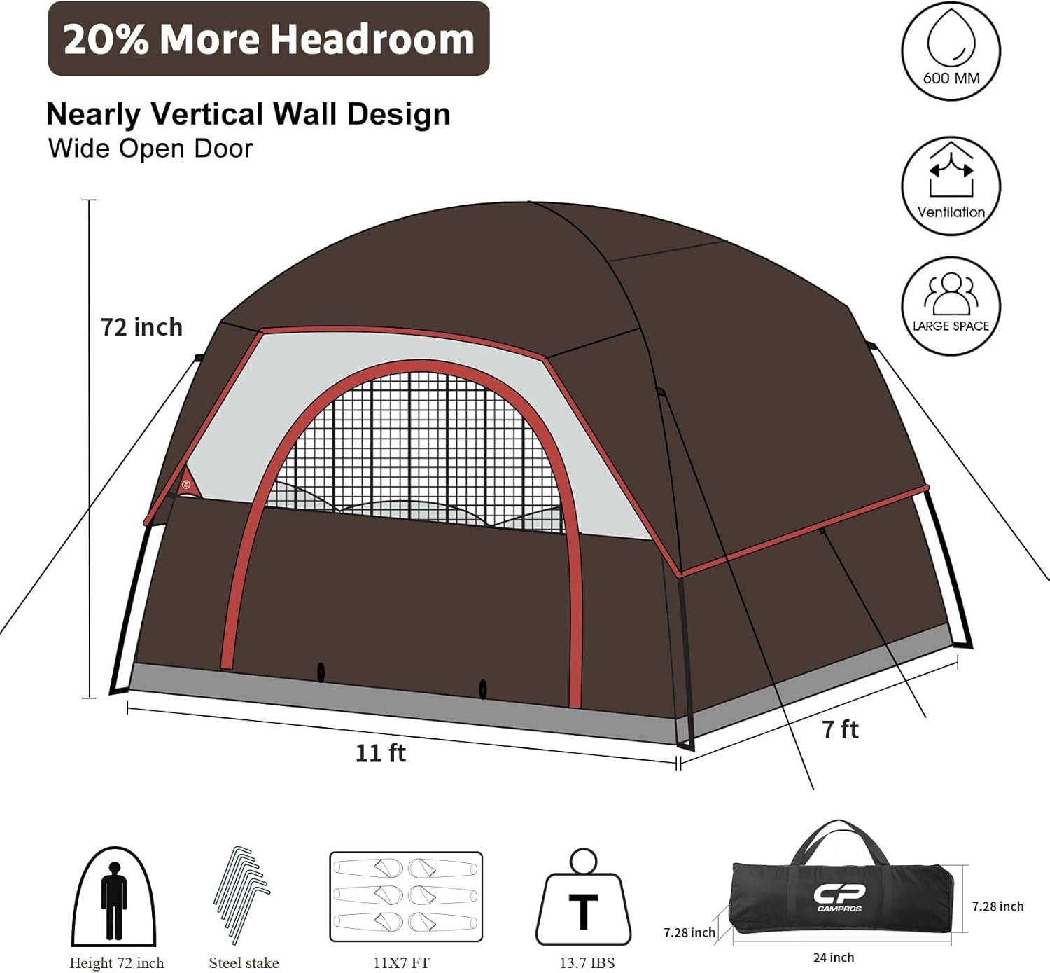 CAMPROS CP Tents for Camping 6 Person Waterproof Windproof Double Layer Family Camping Tent, Easy Setup Dome Tent with Large Mesh Windows & Wider Door for Outdoor Camping & Hiking