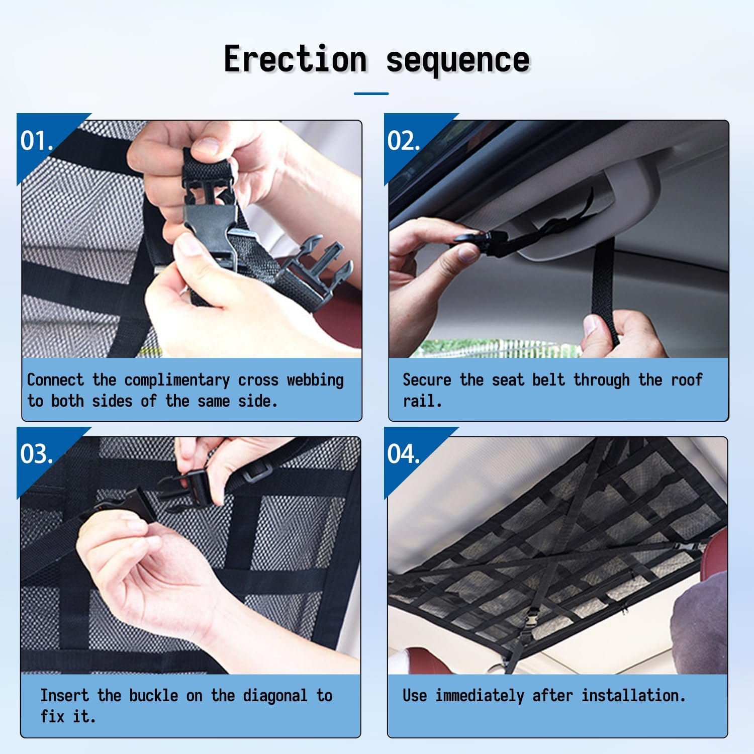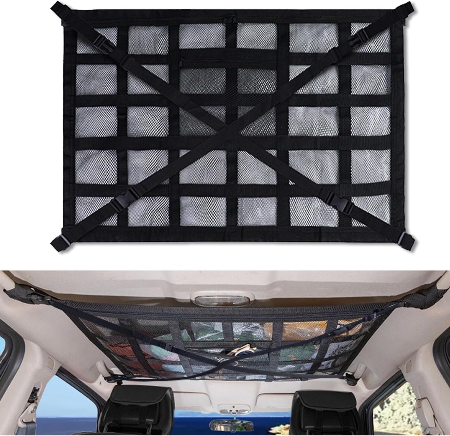 – Wide Application: Ideal for outdoor activities, camping, fishing trips, beach outings, and everyday use. The Car Ceiling Cargo Net is compatible with a range of high-roof vehicles to maximize ceiling space and ensure easy access to your belongings.