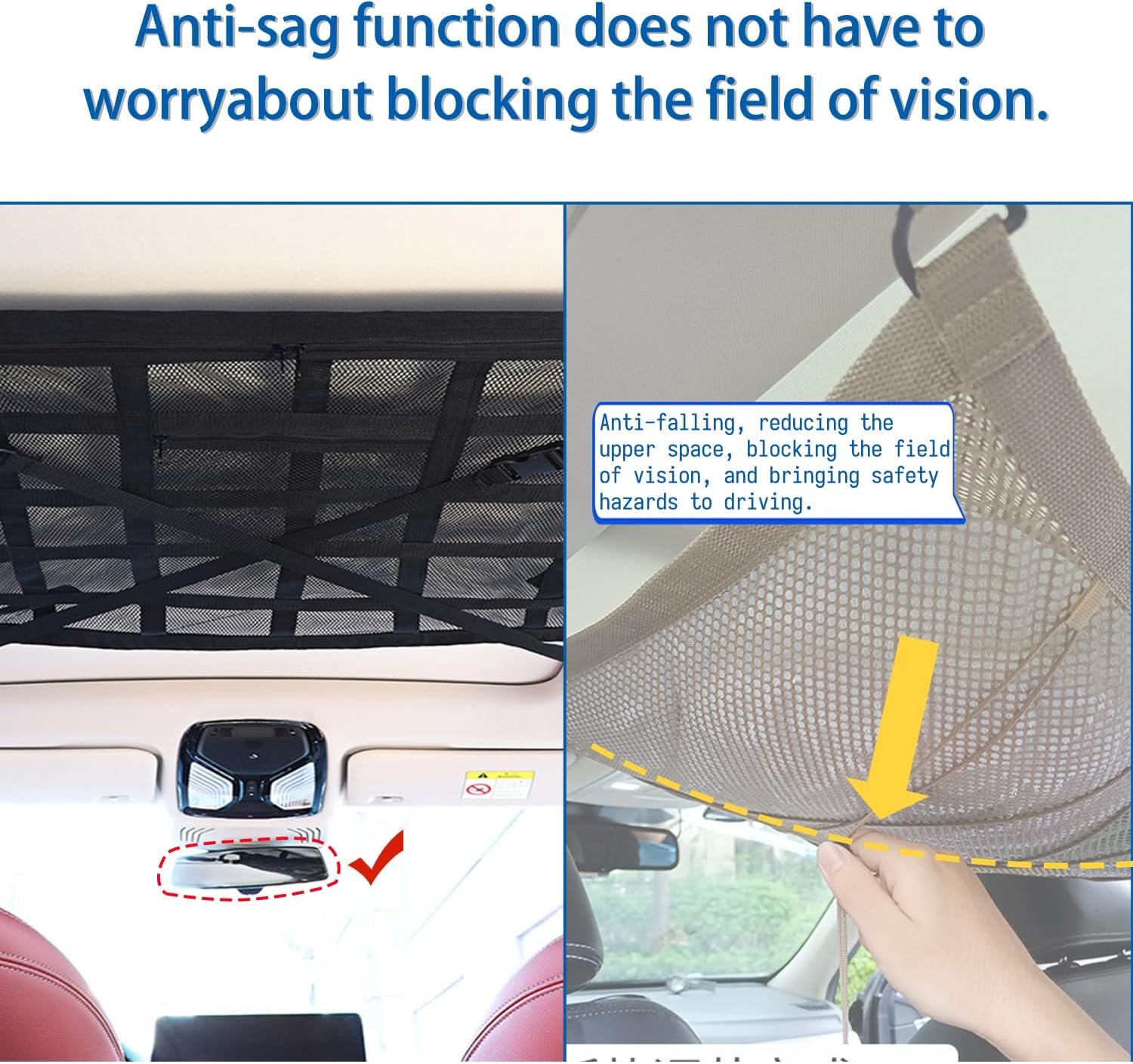 – Customer Satisfaction: Backed by our dedication to quality and functionality, we offer a reliable solution to keep your car organized and your essentials within reach. Experience the convenience and versatility of our Car Ceiling Cargo Net on your next adventure.