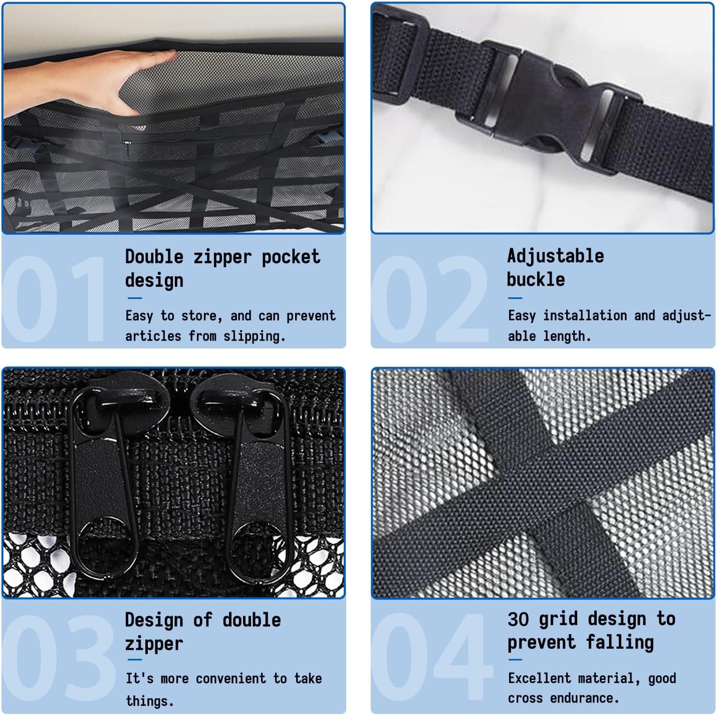 Car Ceiling Cargo Net Pocket Strengthened Load-Bearing DesignDouble-Layer Mesh Organizer for SUVsCar Ceiling Cargo Net Pocket Strengthened Load-Bearing DesignDouble-Layer Mesh Organizer for SUVs