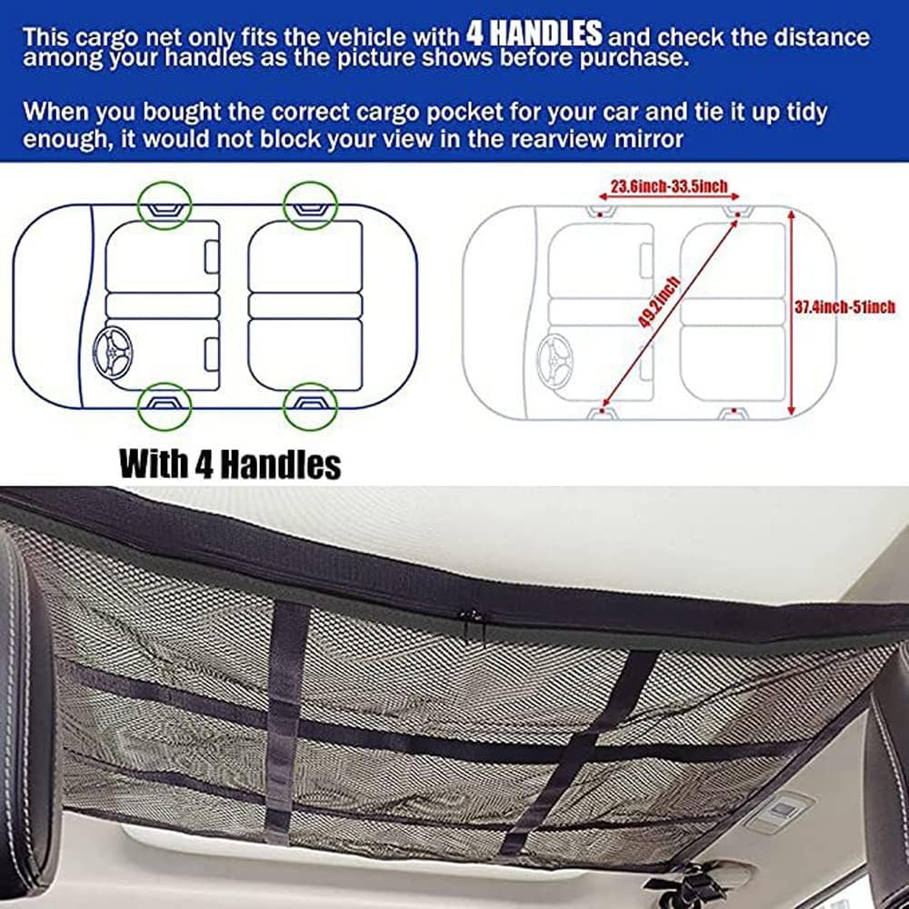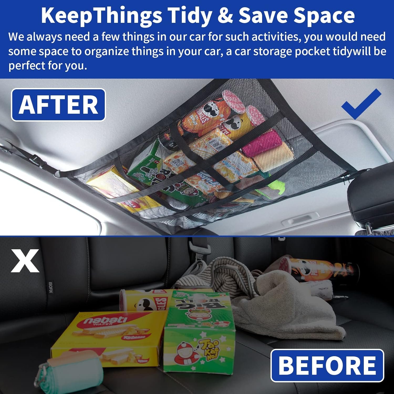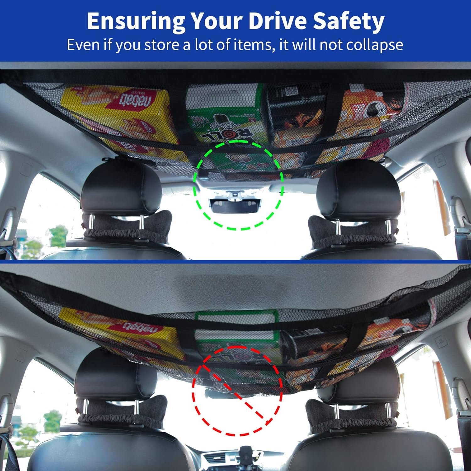Upgraded Car Ceiling Cargo Net Pocket Extra Storage Solution for Long Road Trips!