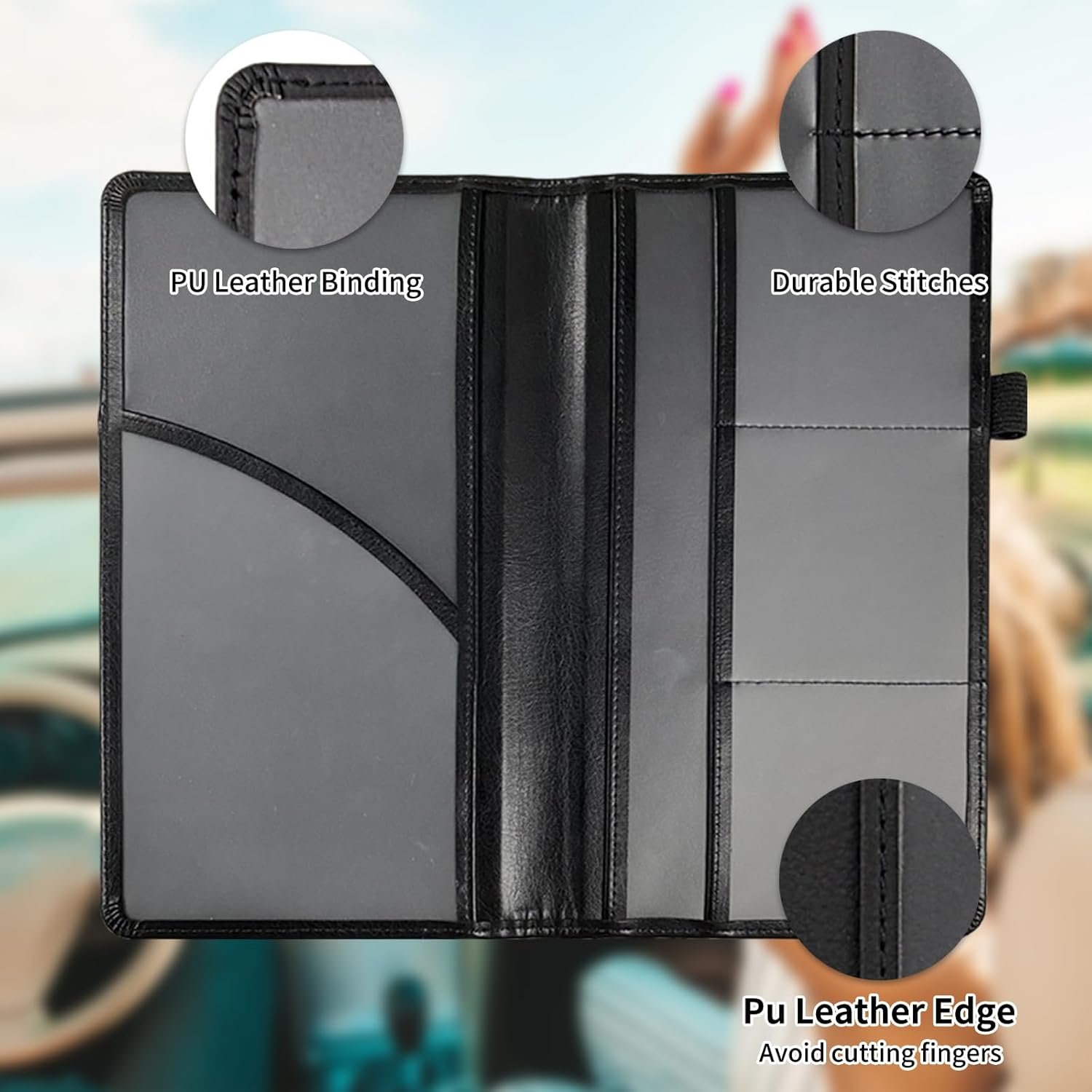 Wrist Strap Closure Design: car document holder has a wrist strap rope closure car insurance card holder, is your vehicle folder can be kept closed when it is not needed, the documents inside will not fall down