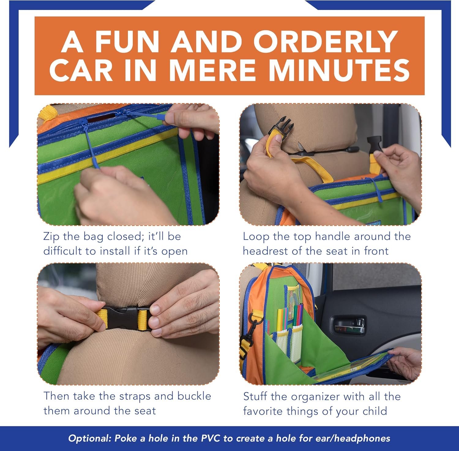 OUR PATENTED DESIGN IS **NON-TOXIC PAHs and LEAD FREE** WITH HIGHLY-ADJUSTABLE COMPONENTS: Get The Original! Unlike other backseat organizers, there are several ways to create the perfect fit for your child. Raise or lower the height, adjust the seat back angle, or move the seat forward and back to create the perfect experience and functionality for your little passenger. **[SEE PRODUCT DESCRIPTION FOR FULL INFORMATION ON WHETHER THIS WILL WORK IN YOUR CAR]**.