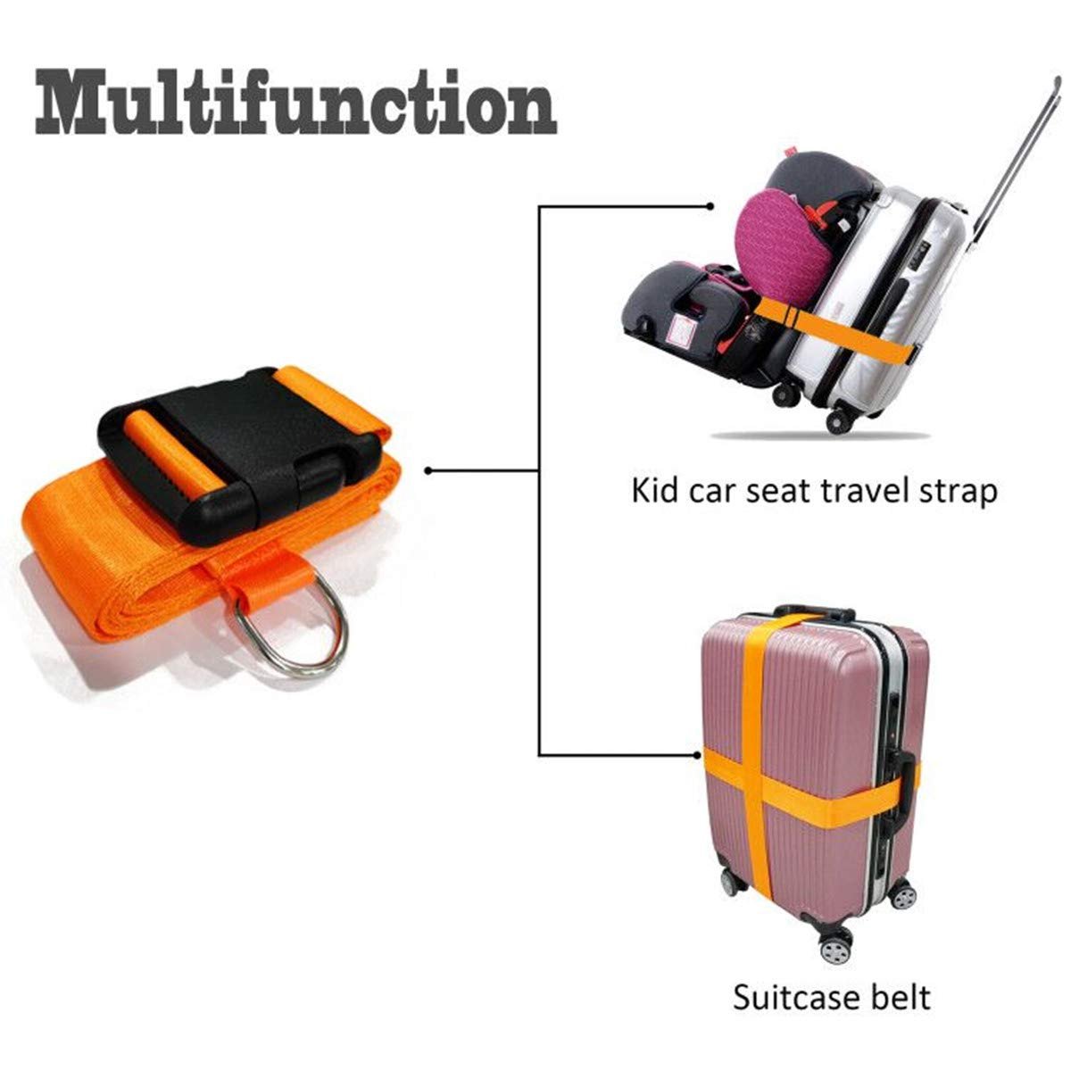 A good way to transport the kid car seat,Use this car seat belt to band the car seat with the luggage together, can use your suitcase to transport the car seat easily.