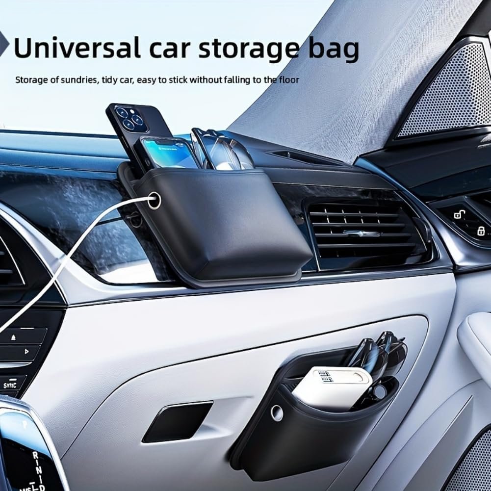 Versatile Fit: With its universal design, this organizer can be installed in most vehicles, ensuring a seamless integration.The strong 3M sticker and Velcro allow you to attach it to any flat surface.