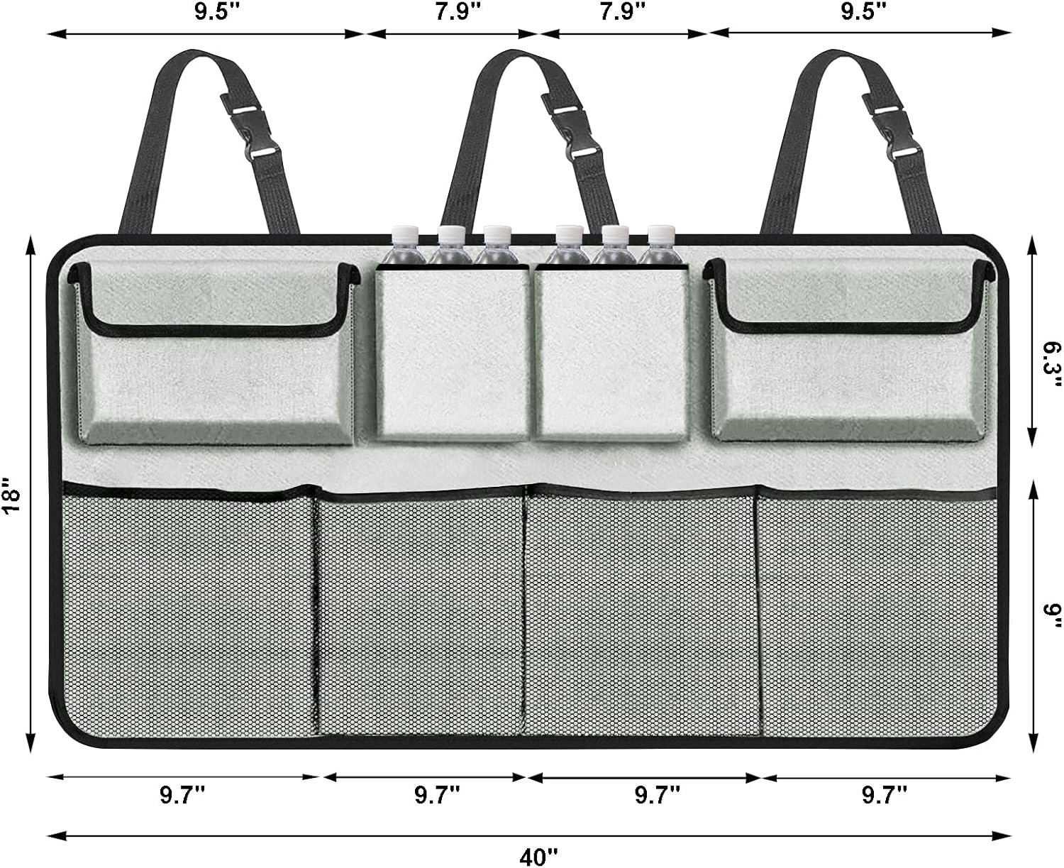 【Essential Automotive Accessory】The Snuopfy Backseat Hanging Organizer is crafted from durable 600D Oxford cloth, providing excellent water resistance and long-lasting use. Its reinforced back panels and sturdy sidewalls ensure stability, while the Velcro base secures it firmly to the back of your rear seats, preventing slipping. With dimensions of 40 inches by 18 inches, this organizer is essential for maintaining a tidy vehicle, perfect for car enthusiasts.