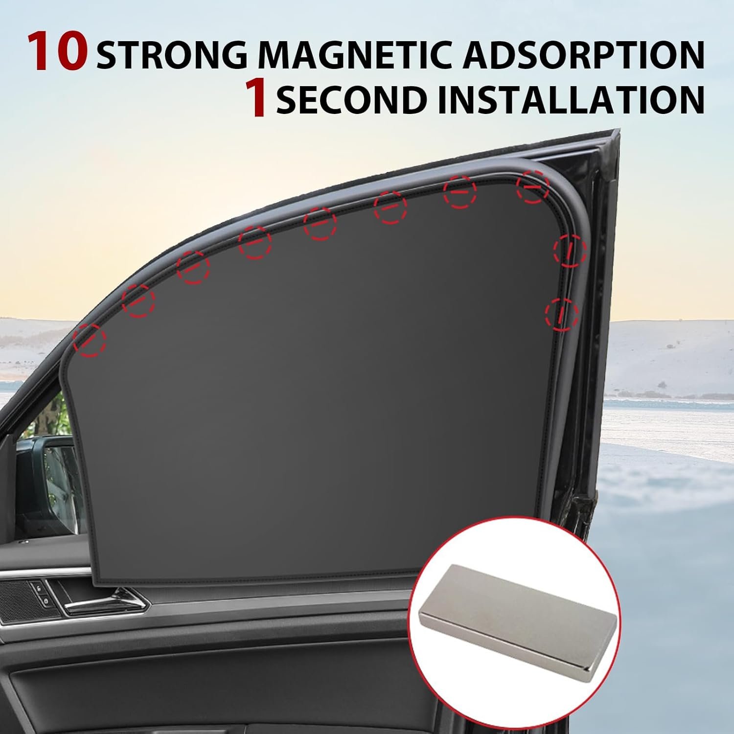 Universal for All Seasons: This car window sunshade is designed to be universal for all seasons and can be adapted to all weather conditions throughout the year. It is made of titanium silver fabric that provides excellent protection in both summer and winter.