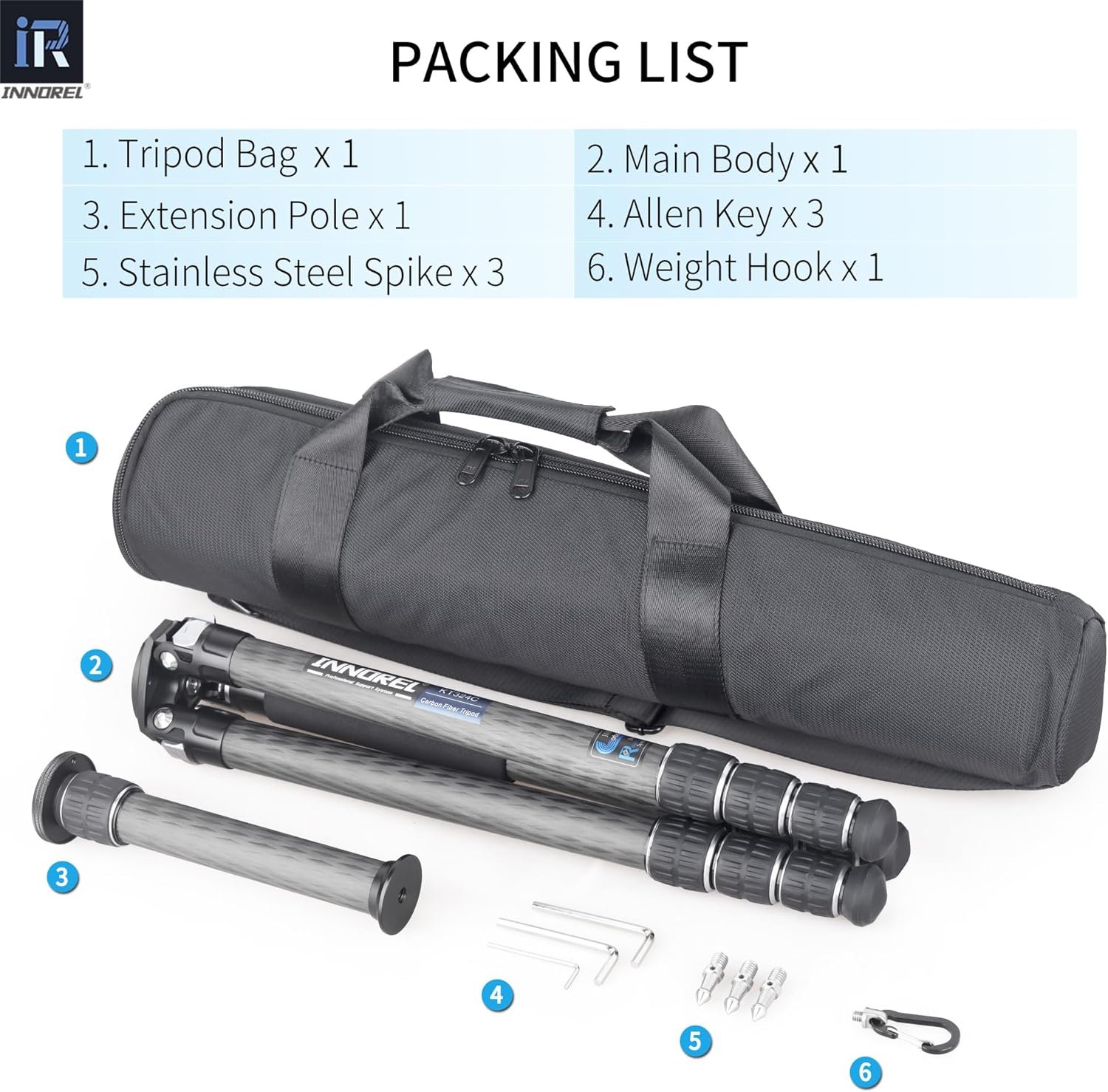 Carbon Fiber Tripod INNOREL KT324C Without Head Professional Portable Compact Travel Tripod for Digital DSLR Camera Heavy Duty Stand Support 1.28in/32.5mm Tube Max Load 55lbs/25kg with Center Column