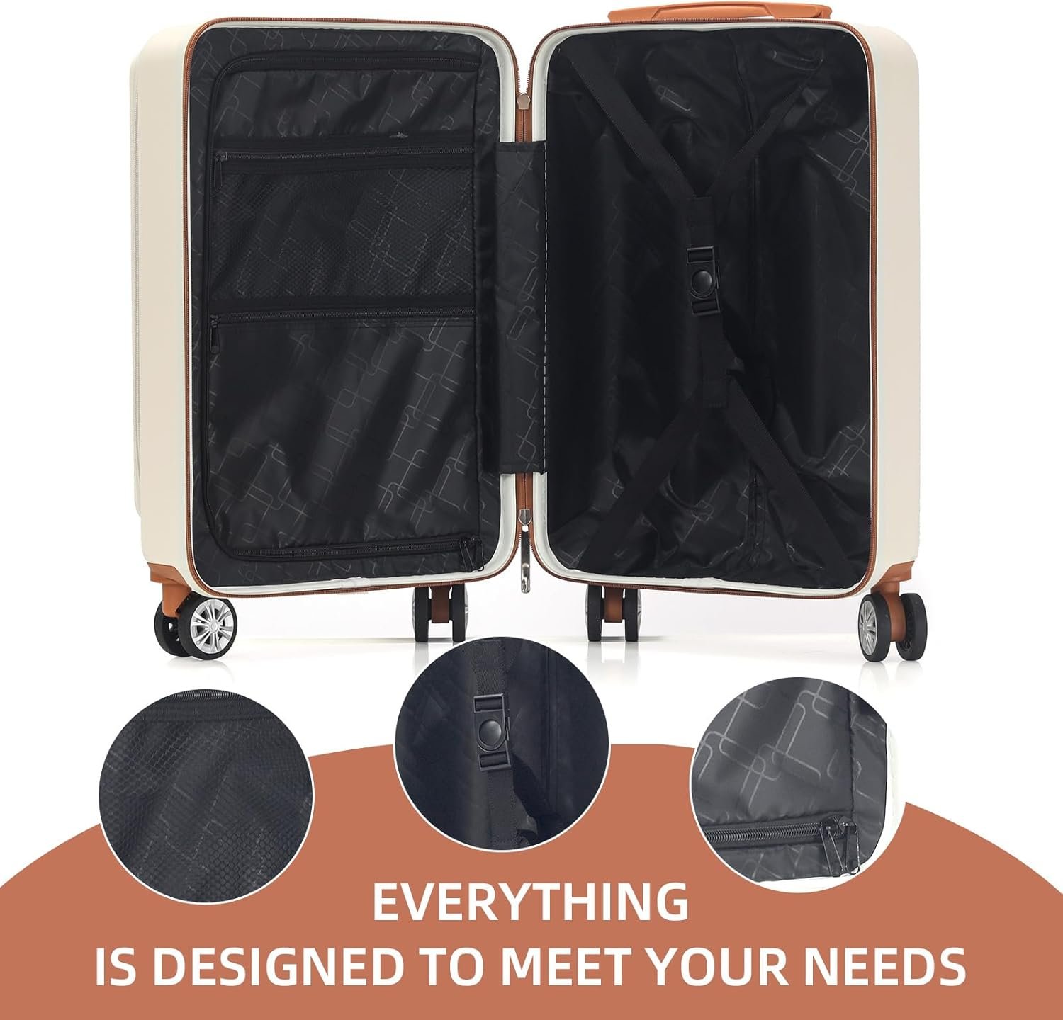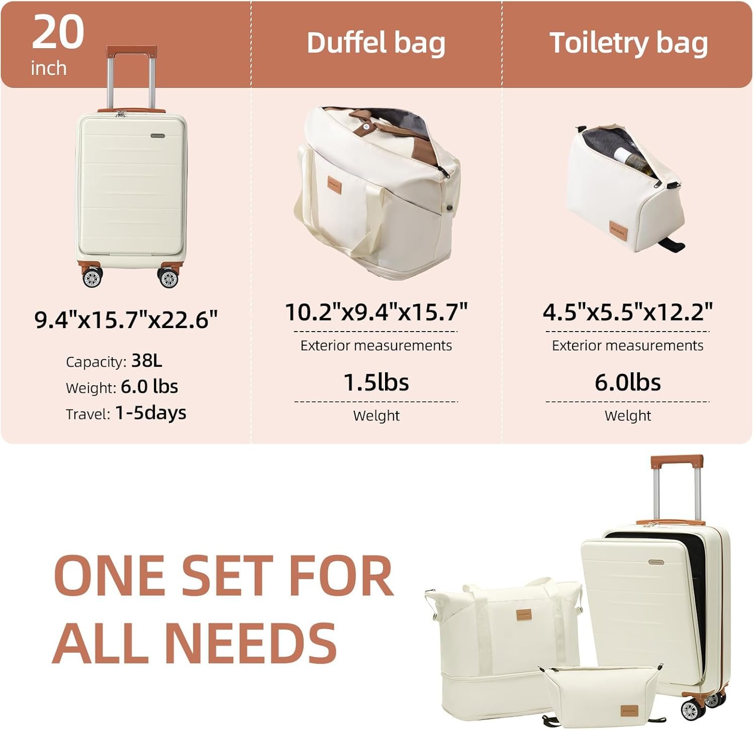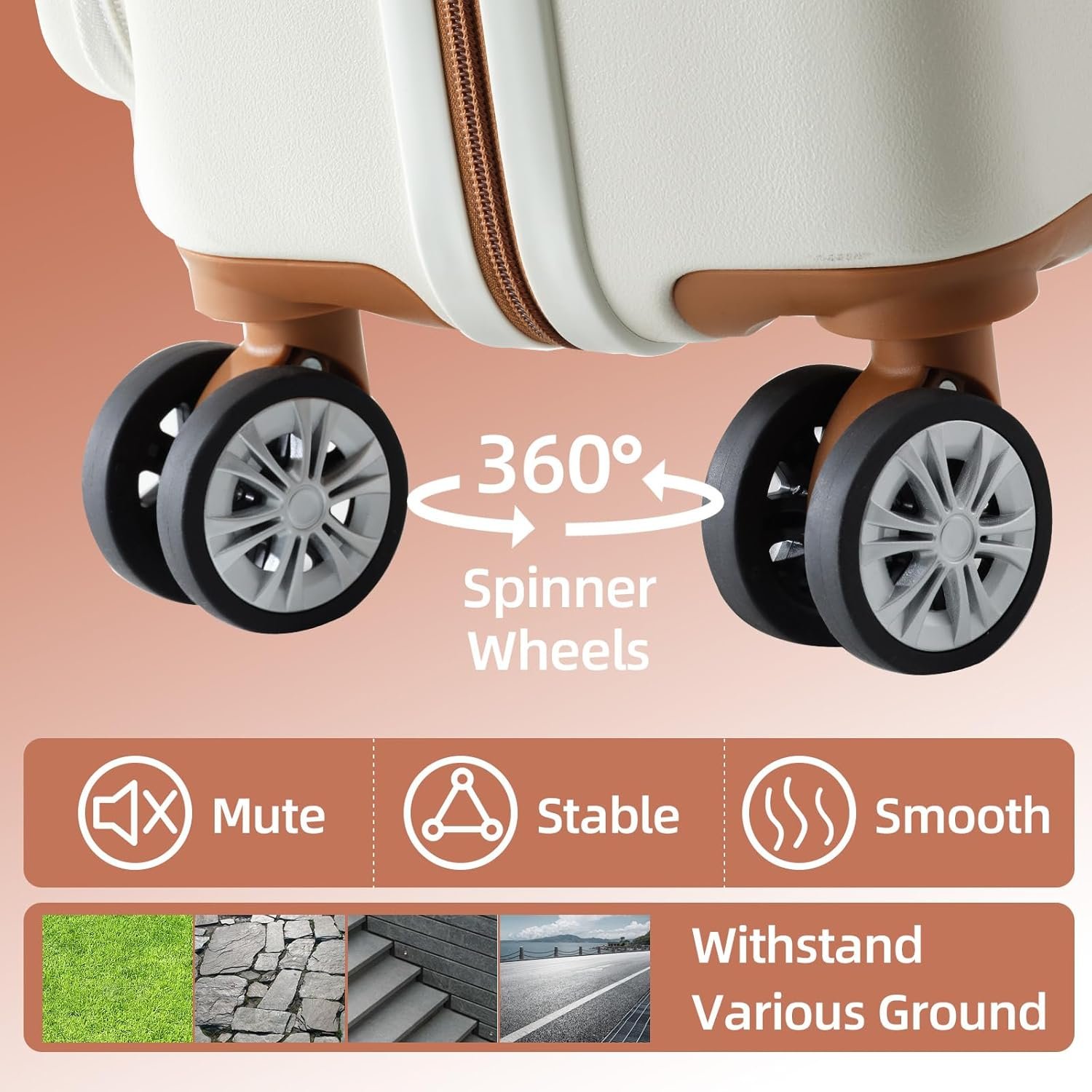 Carry On Luggage Set 3 Piece Hard Shell Suitcases Front Opening with TSA Lock Spinner Wheels (White, 3 piece set)