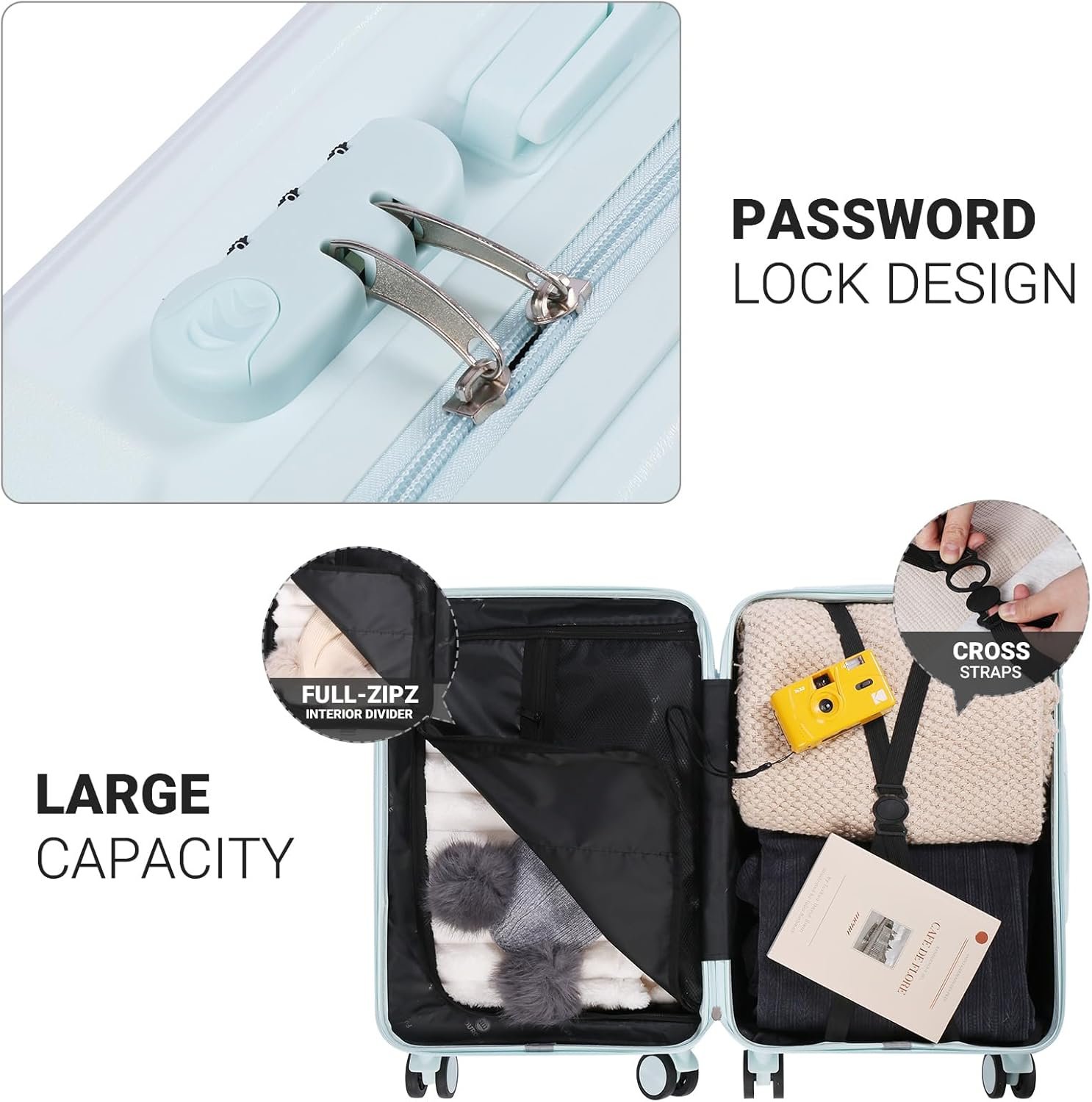 LARGE CAPACITY: Changing the way the interior is organised, using scientific zoning at a glance, allowing you to easily and conveniently pack your belongings and make travel storage in order.