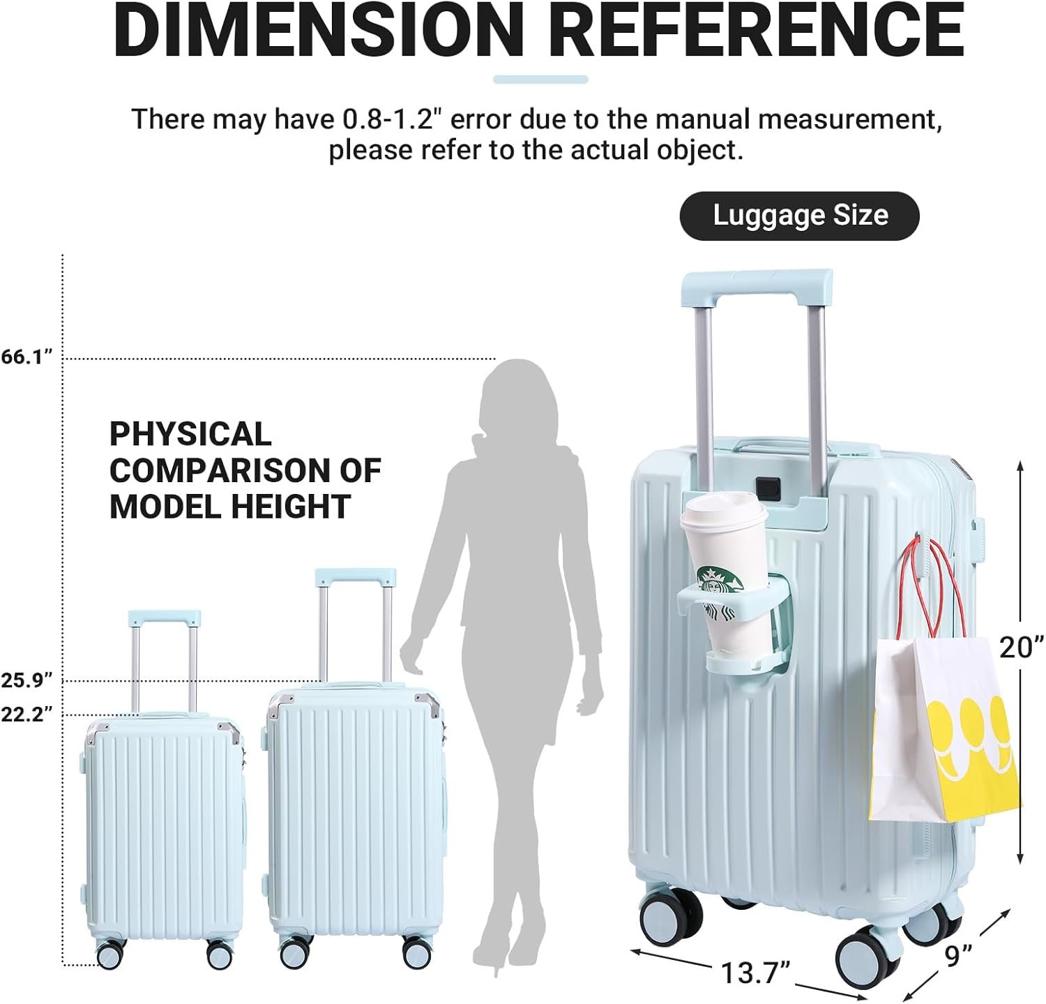 DURABLE: This suitcase is made of ABS+PC material, ABS material is hard and easy to brittle, after adding PC material flexibility will be very high, touching although soft, but lifting is very light, the average adult standing on it are no problem.