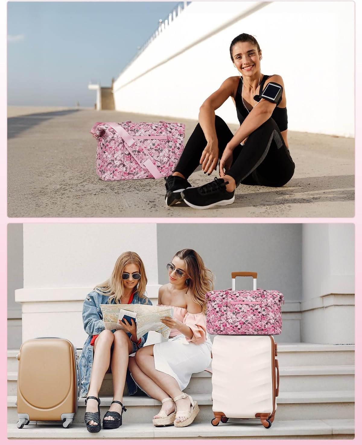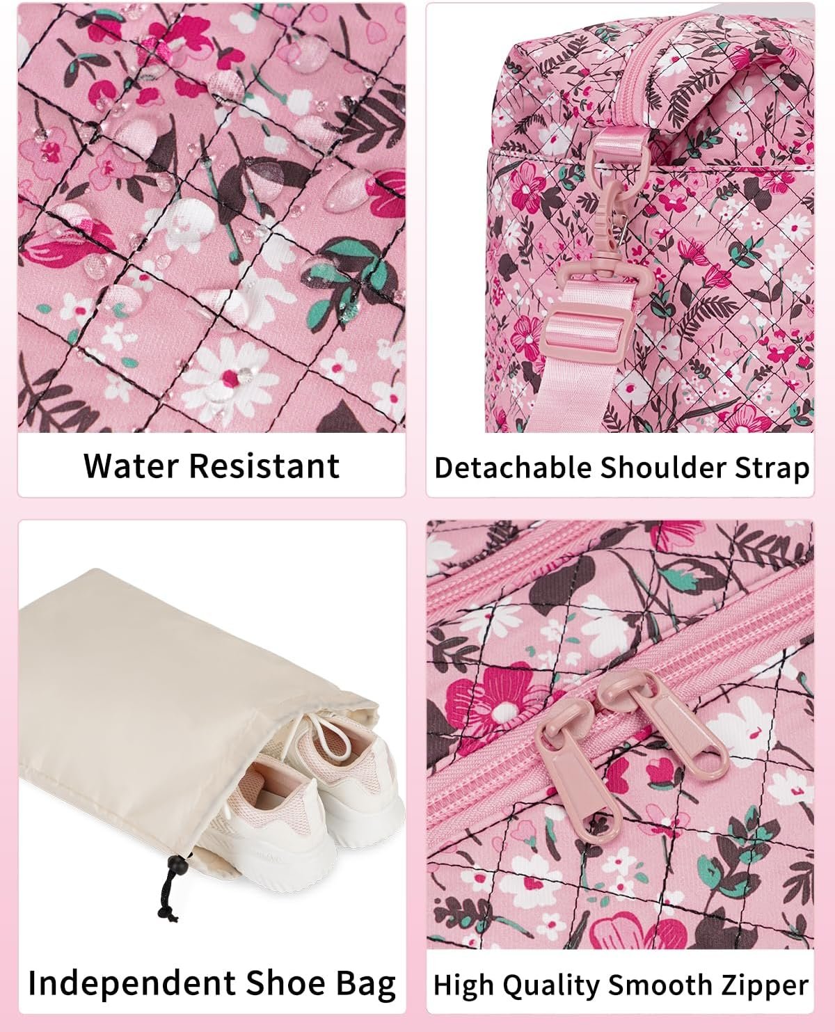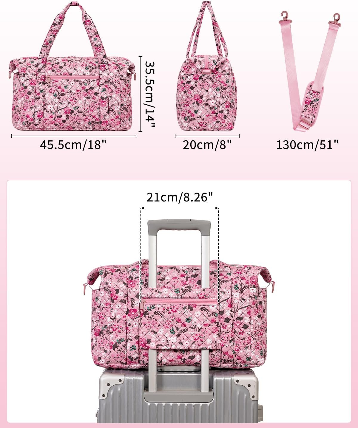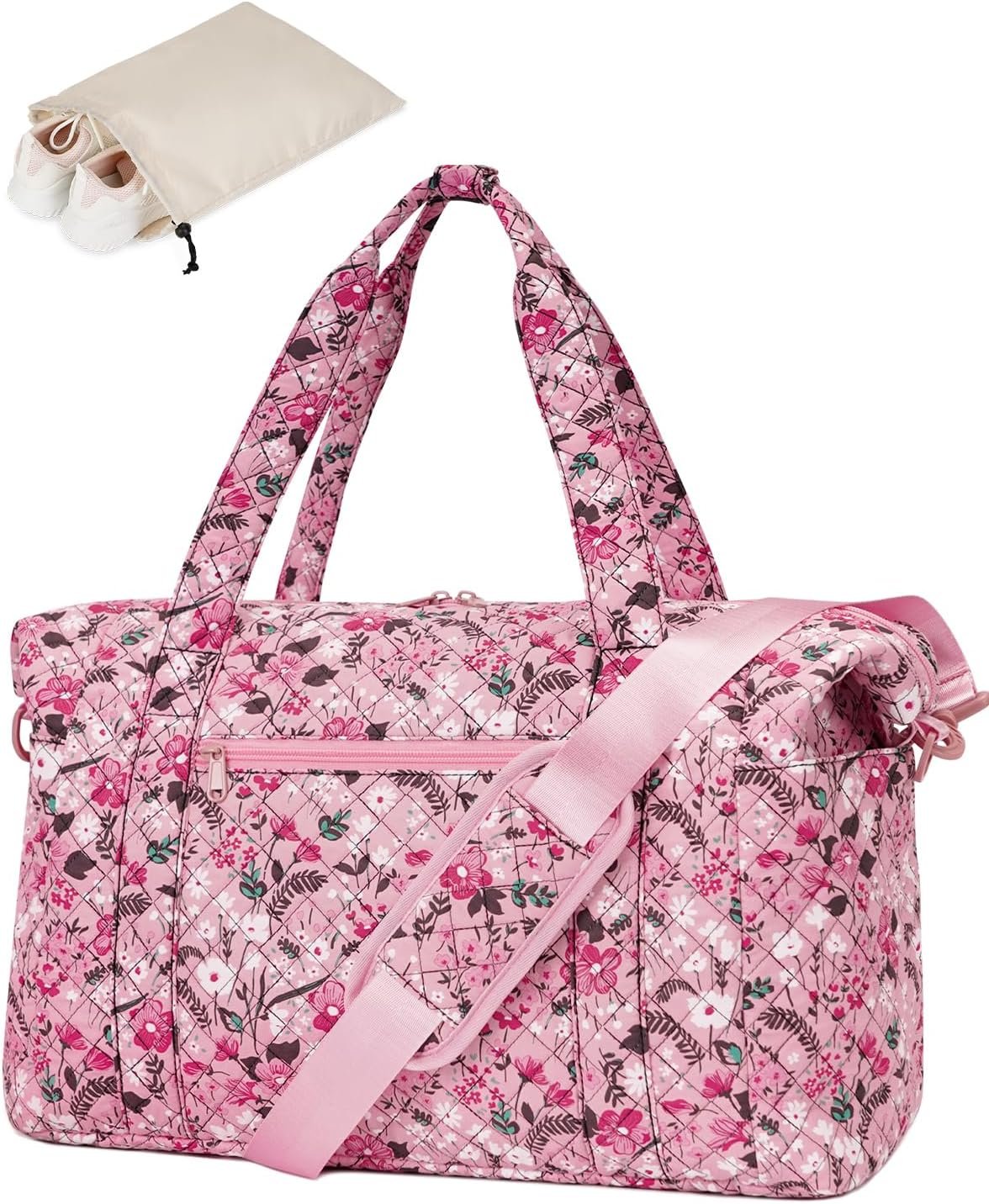 Ceneda Travel Duffel Bag for Spirit Airlines Personal Item Bag 18x14x8 Under Seat Weekender Overnight Bag with Wet Pocket & Shoe Bag Carry On Luggage for Women Men (Pink Flower)