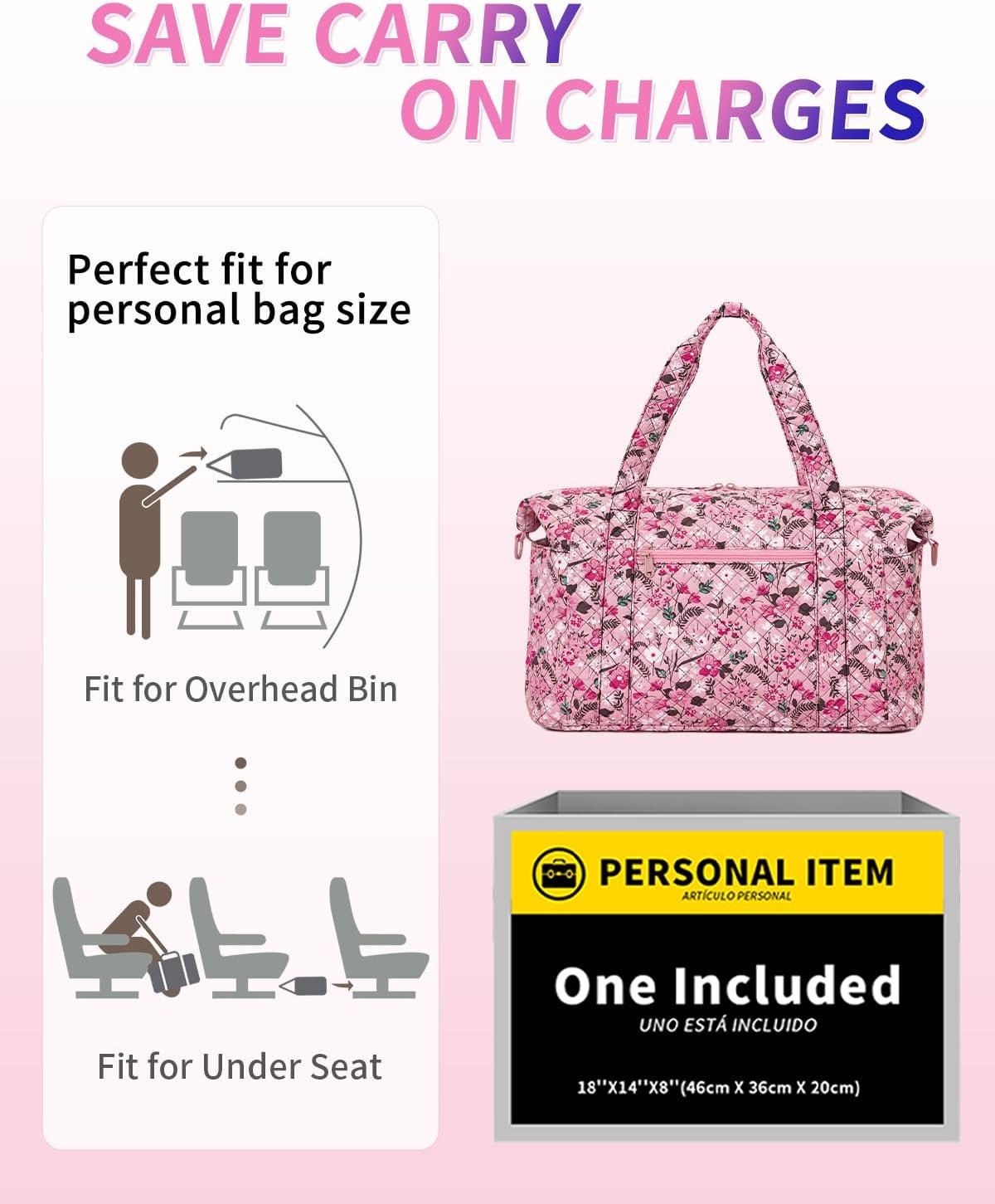 【18x14x8 Personal Item Size】Ceneda 18 x 14 x 8 inches travel bag meets the personal item dimensions requirements of Spirit and Frontier and most airlines’ guidelines, it can be placed under the seat or overhead bin, and you won’t be charged carry on fees for exceeding the size limits.(patent pending)