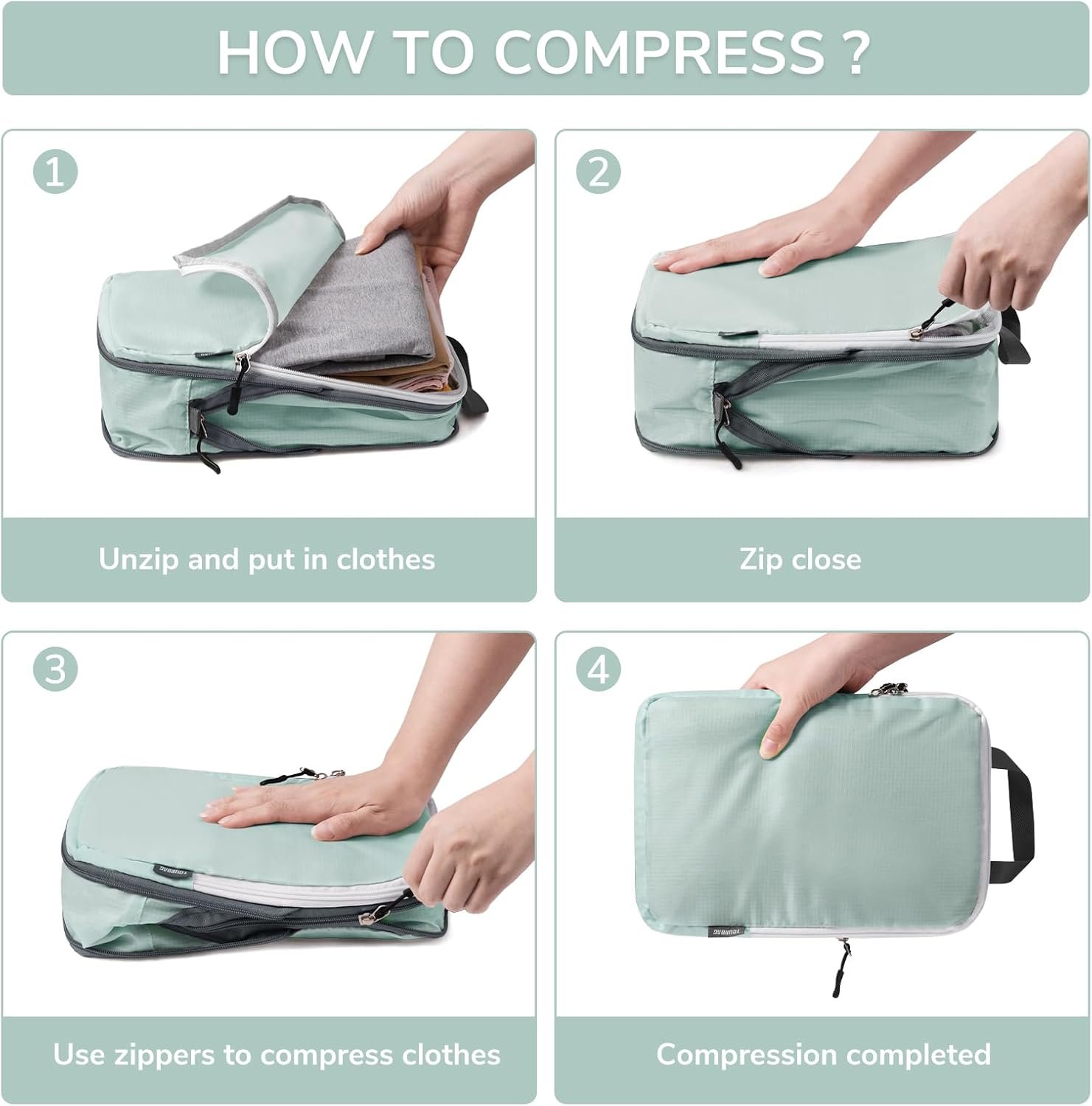 Easy to Use: Just unzip, pack in your clothes, and zip up to compress. These packing cubes are perfect for travelers who want to efficiently organize their clothing, making packing and unpacking a breeze