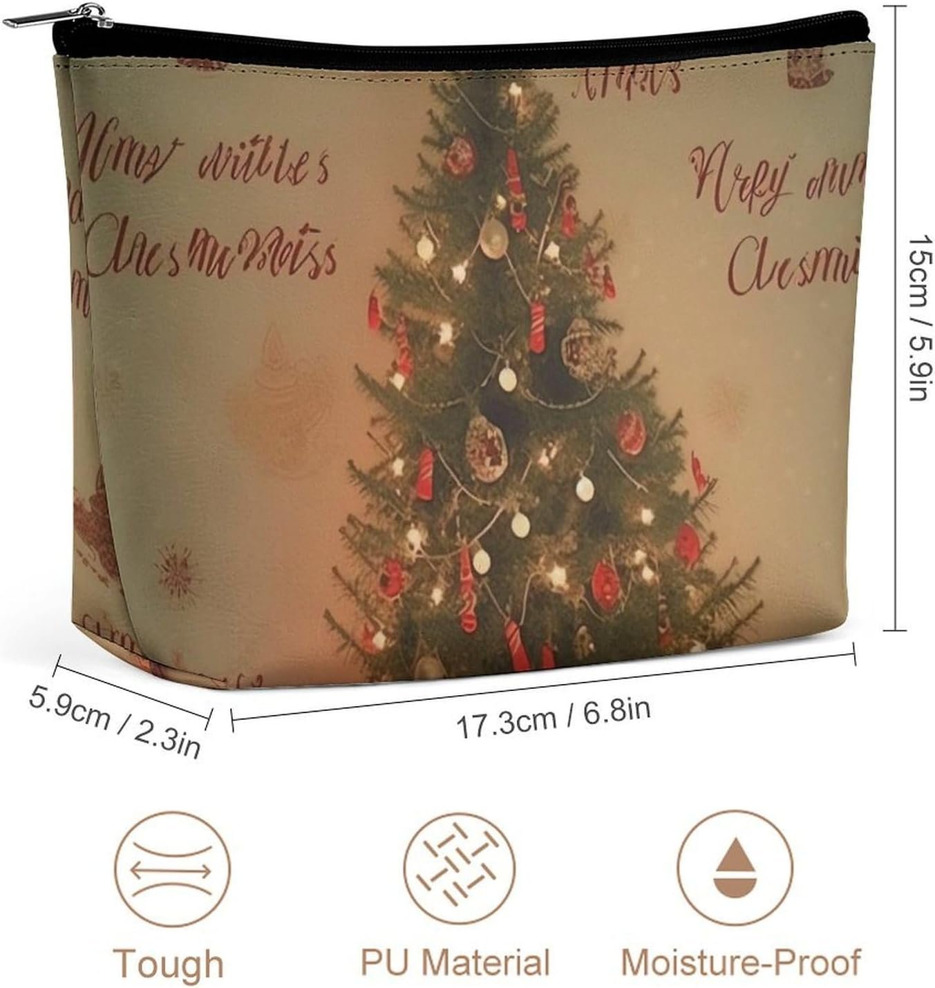 Quality Material: Christmas Tree Travel Bags for Women Toiletry Is Made of PU Leather, Which Is Soft and Waterproof. Smooth Zipper That Will Protect Your Items Perfectly When Closed. The Open Design Allows You to Quickly Find and Retrieve Items, Bringing You More Convenience