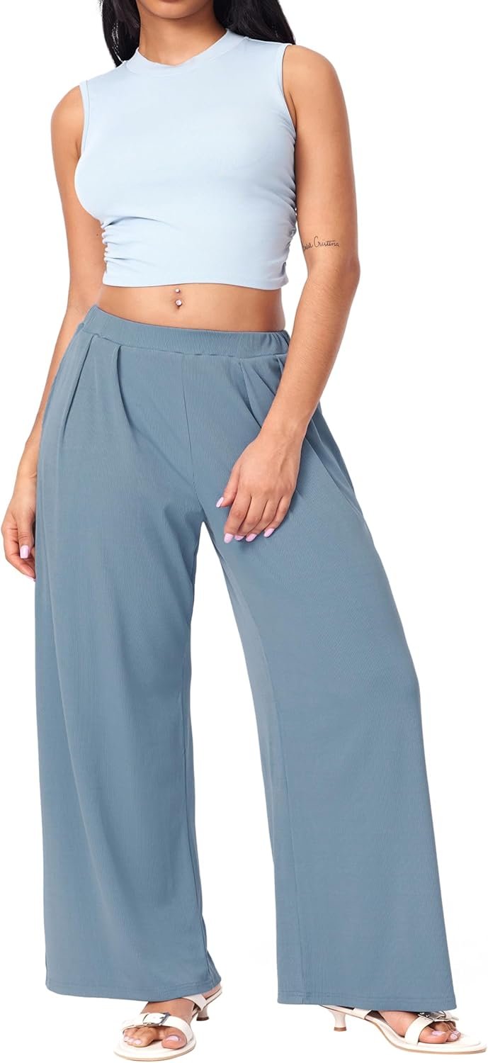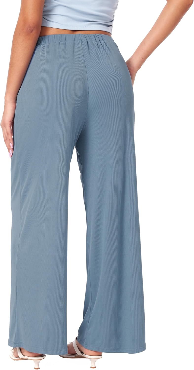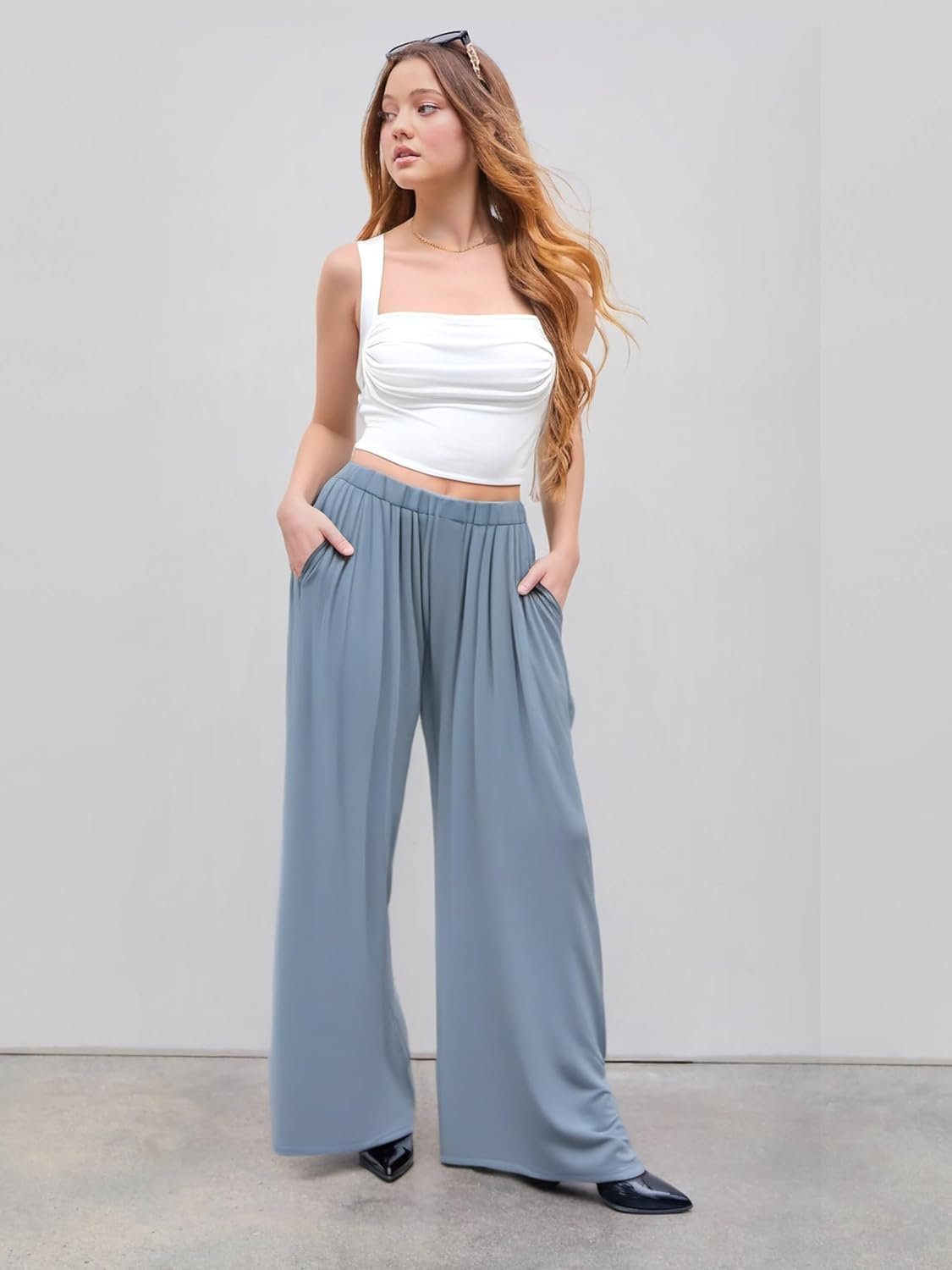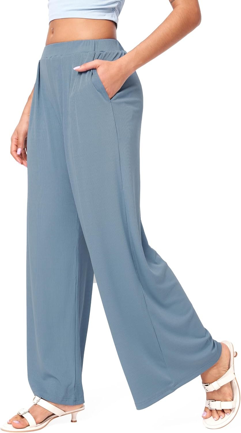 CIDER Wide Leg Palazzo Pants for Women with Pockets Elastic Business Causal Pants Women Summer for Beach Travel Trousers