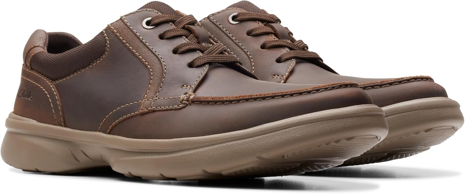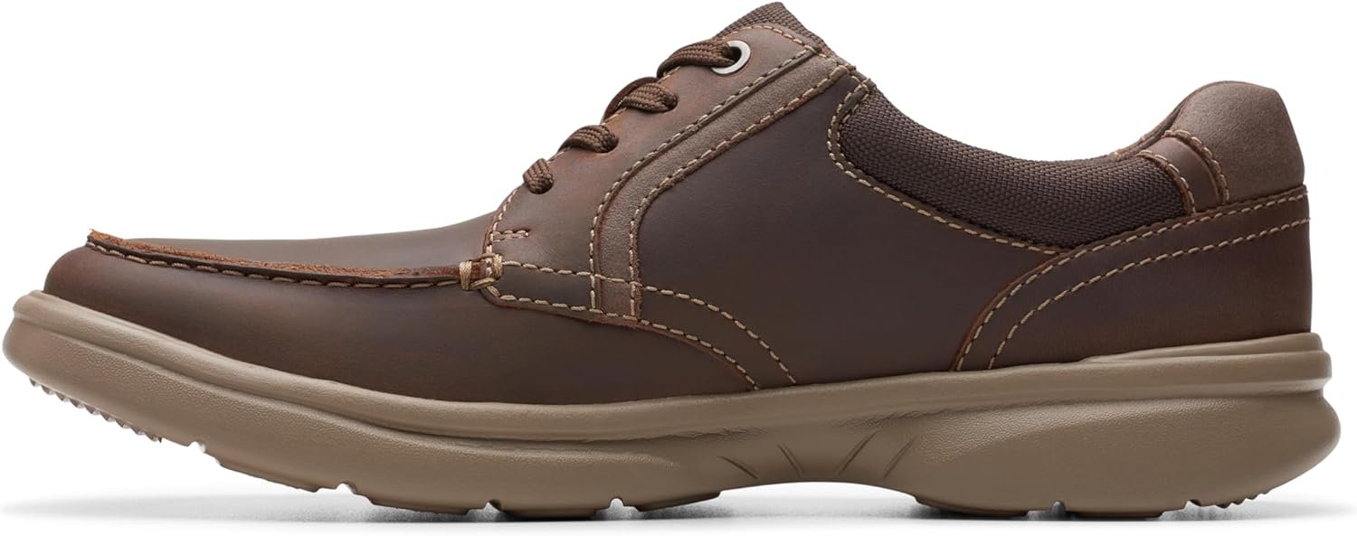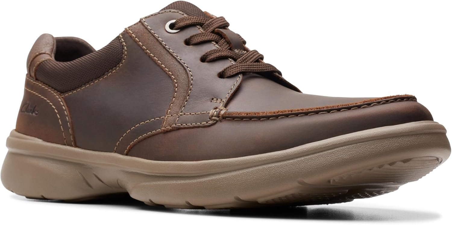 Clarks men the Bradley Vibe: This lace-up style goes anywhere, thanks to a full grain leather upper with an apron toe and a durable outsole made from lightweight EVA. As an Ultimate Comfort style, it benefits from full-length cushioning and a moisture-wicking Ortholite footbed.