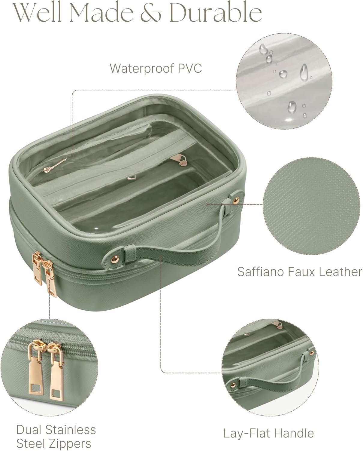 Well Made Cosmetic Bag: Made of premium saffiano faux leather and clear PVC, the toiletry case is scratch resistant, waterproof and easy to clean. This clear toiletry bag boasts dual stainless steel zippers and a lay-flat handle for added durability and convenience.