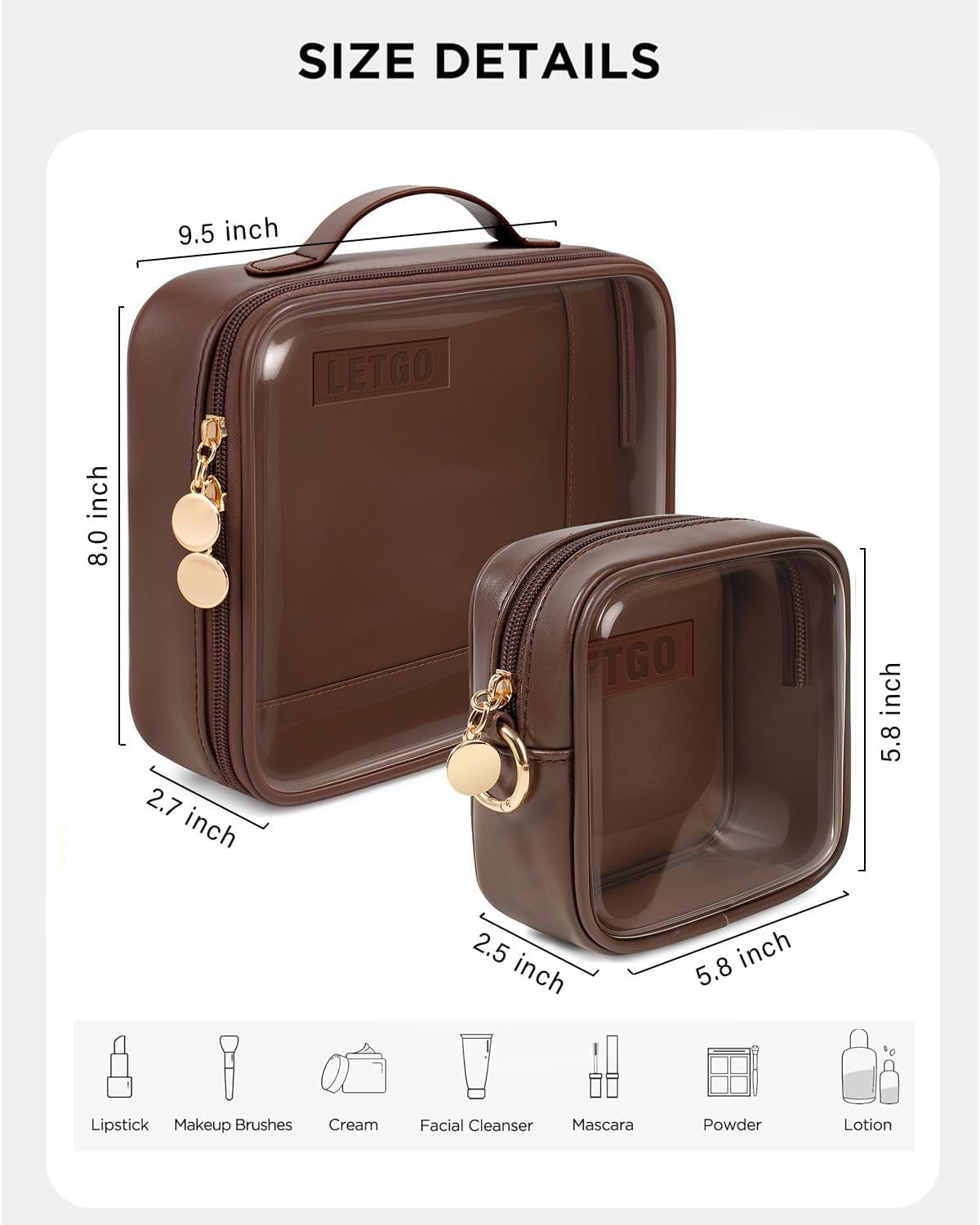 ✈️【2Pack Travel Size Toiletries Bag】the clear cosmetic bags perfectly store the travel bottles for toiletries, travel size toiletries kit, and other travel essentials. The travel size mini clear makeup bag is 5.9 x 5.31 x 2.36 inch,travel size large clear makeup bag is 9.8 x 7.87 x 2.36 inch.